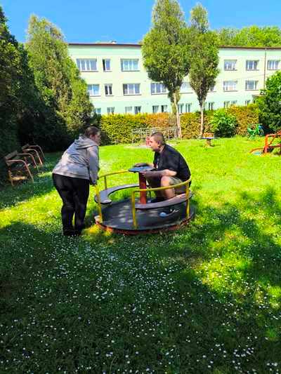 Uczniowie zespołu wychowawczo - rewalidacyjnego aktywnie spedzają czas na placu zabaw oraz na spacerach. Wykorzystują piękną pogodę i dobry wiosenny nastrój. Taka aktywność ma za zadanie utrwalanie zdrowych nawyków i podnoszenia zainteresowania zjawiskami otaczającej nas natury.