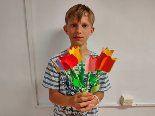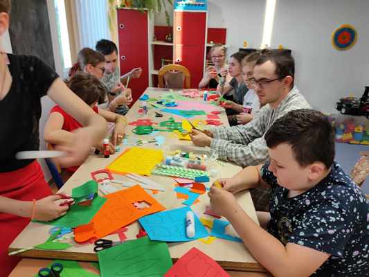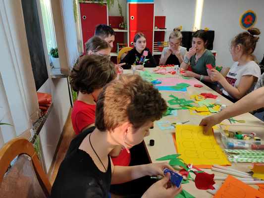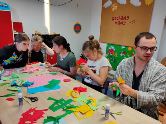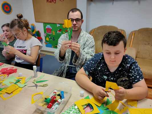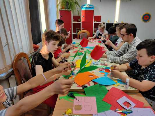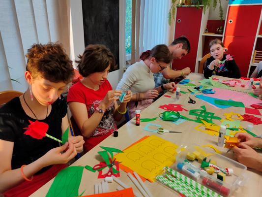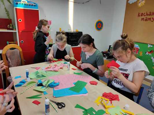 Wychowankowie internatu podczas warsztatów plastycznych pod hasłem "Kwiaty dla mamy", przygotowali dla swoich najukochańszych mam piękne kwiaty z barwnego papieru. Dzieci takim drobnym gestem podziękują swoim mamom za ich miłość, troskę i opiekę.