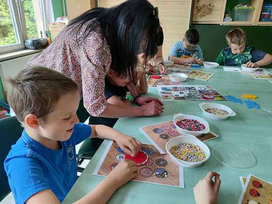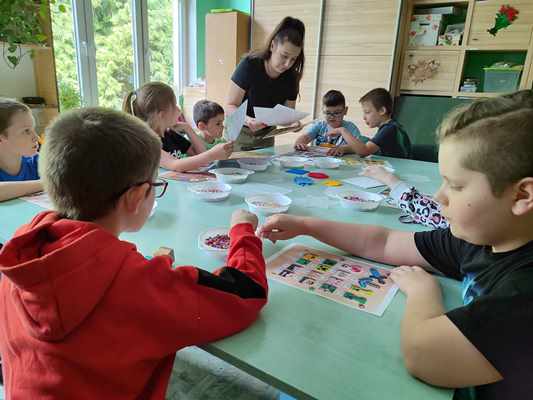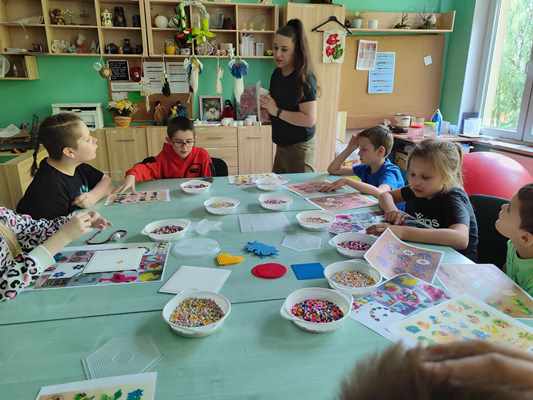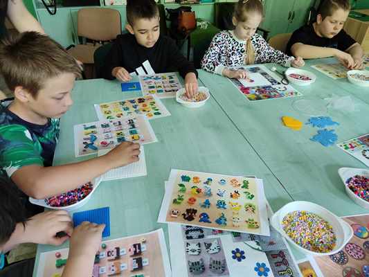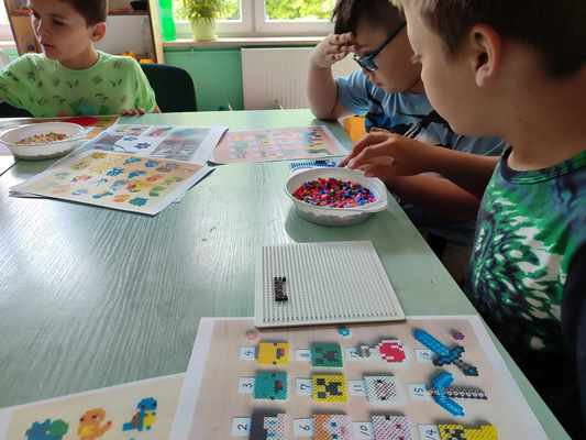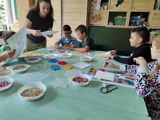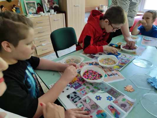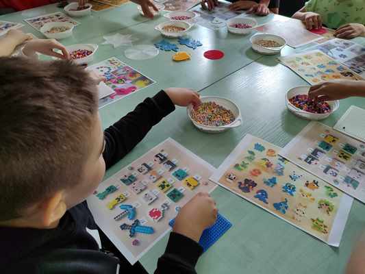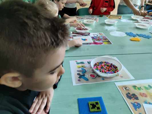 Uczniowie klas pierwszych szkoły podstawowej w ramach zajęć rozwijających zainteresowania wzięli udział w warsztatach koralikowych na terenie HDK. Nowe miejce i miła atmosfera motywowały do precyzyjnej i uważnej pracy. Pod okiem fachowej ekipy z ,,Artystycznej dziupli" powstały kolorowe obrazki płaskie z rożnobarwnych elementów. Dziękujemy za wspólnie spędzony czas i poświęconą uwagę uczniom. J.Goszko, M. Nowak