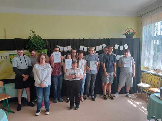 W dniu 11.06.2024 r. uczniowie Szkoły Przysposabiającej do Pracy wzięli udział w Międzyszkolnym Konkursie klas PDP w Dorohusku. Uczestnicy mieli za zadanie nadać paczkę, skonstruować drabinkę oraz zszyć kawałki materiału. Kolejnym wyzwaniem było palikowanie roślin i tu nasi uczniowie świetnie sobie poradzili. Po podsumowaniu wszystkich konkurencji nasza drużyna otrzymała pierwsze miejsce oraz atrakcyjne nagrody. Konkurs był okazją do sprawdzenia wiedzy i umiejętności jak również do poznania nowych kolegów.