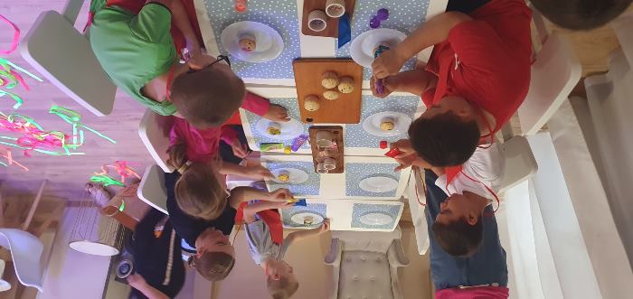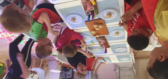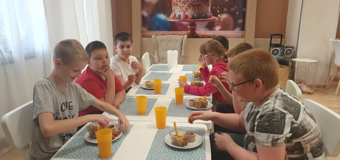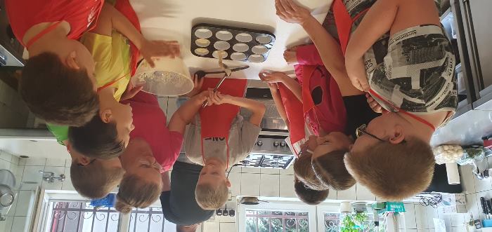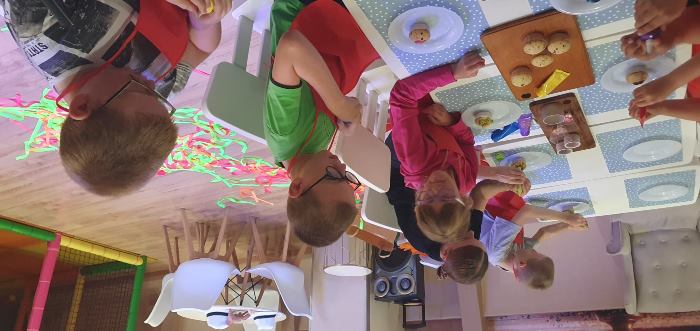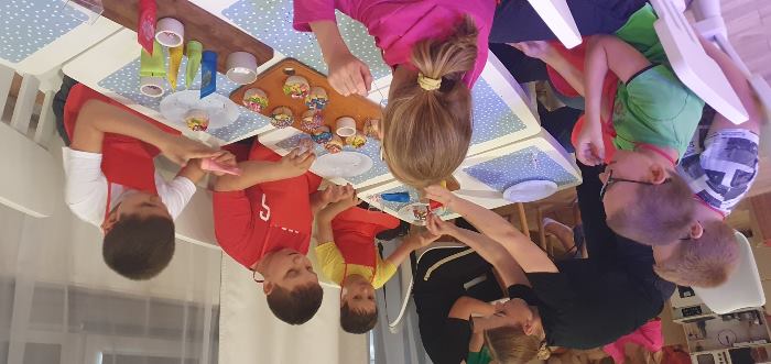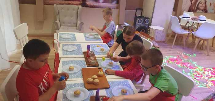 Klasa II i III gościły na warsztatach "Pieczenie mufinek" w restauracji KASIEŃKA. Pobyt zaczął się aktywnie w strefie zabaw. Następnie uczniowie przygotowywali wspólnie w kuchni ciasto mufinkowe. W trakcie pieczenia ciasteczek, spędzili czas na kreatywnych zabawach. Upieczone mufinki zostały kolorowo udekorowane. Pobyt zakończył wspólnie spożyty obiad i oczywiście degustacja własnoręcznych wypieków. Jak zawsze mile spędzony czas pozostanie na długo w pamięci dzieci. Humory dopisywały wszystkim.