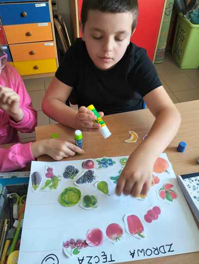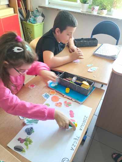 7 czerwca 2024 roku, w klasie I-II przeprowadzono lekcję otwartą z wykorzystaniem technologii informacyjno – komunikacyjnej (TIK). Uczniowie nazywali owoce i warzywa, dokonywali ich podziału ze względu na kolor. Poznali wpływ owoców i warzyw na zdrowie człowieka. Na zajęciach wykorzystano zasoby Internetu i aplikację Wordwall, wspomagano umiejętności komunikacyjne symbolami PCS i programem Mówik.