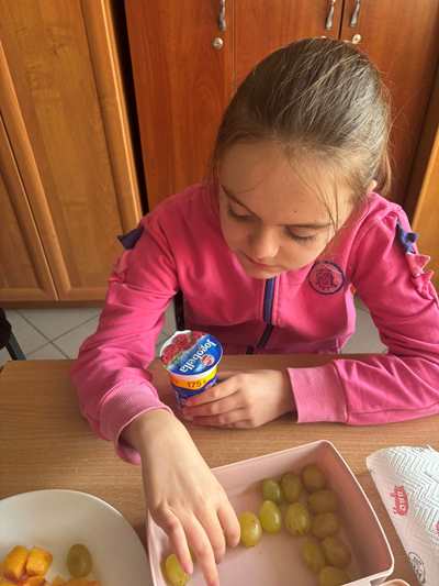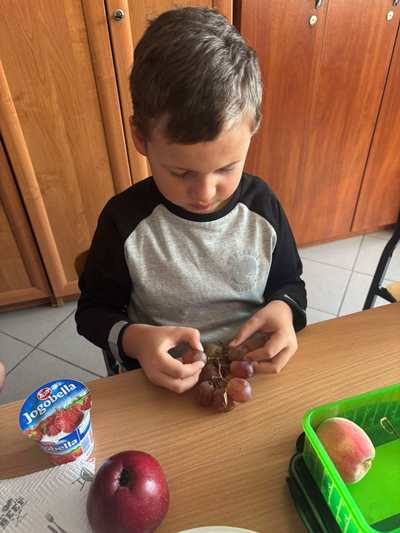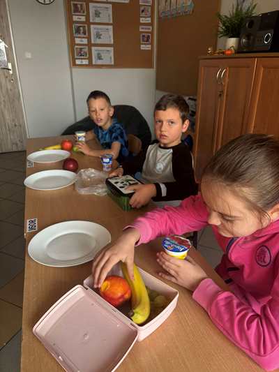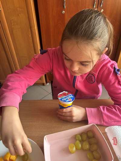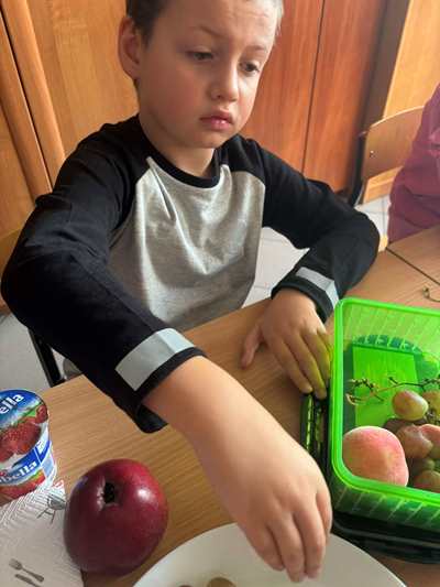 Uczniowie klasy I wzięli udział w zajęciach z Funkcjonowania osobistego i społecznego, których głównym celem było przygotowanie sałatki owocowej. Zajęcia miały na celu rozwijanie umiejętności praktycznych, współpracy w grupie oraz dbania o zdrowie i higienę. Nauczyciel omówił z uczniami, jakie owoce będą używane do sałatki i dlaczego warto jeść owoce, zwracając uwagę na ich wartości odżywcze. Przed przystąpieniem do pracy, uczniowie zostali pouczeni o konieczności umycia rąk, owoców i używanych narzędzi kuchennych. Każdy uczeń miał swoje stanowisko z potrzebnymi narzędziami – deska do krojenia, nóż (dostosowany do umiejętności uczniów), talerze na owoce. Dzieci z pomocą kroiły owoce (np. jabłka, banany, winogrona,), ucząc się przy tym precyzji i bezpieczeństwa pracy z narzędziami. Po pokrojeniu owoców uczniowie wymieszali je. Podczas tej czynności nauczyciel zachęcał do współpracy i dzielenia się obowiązkami. Zajęcia były doskonałą okazją do rozwijania umiejętności praktycznych oraz pracy w zespole. Dzieci miały możliwość samodzielnego działania, a jednocześnie uczyły się współpracy. Każdy uczeń aktywnie uczestniczył w przygotowaniach, co wpłynęło na poczucie odpowiedzialności za wspólny efekt.
