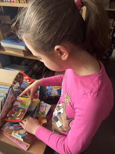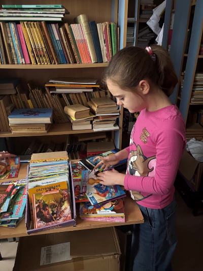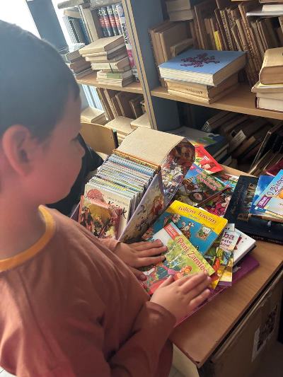 Najważniejszym momentem spotkania było pierwsze wypożyczenie książek. Każdy uczeń mógł wybrać jedną bajkę. Dzieci z ogromnym entuzjazmem przeglądały półki z książkami. Wypożyczenie pierwszej książki było dla nich symbolicznym początkiem przygody z czytaniem.