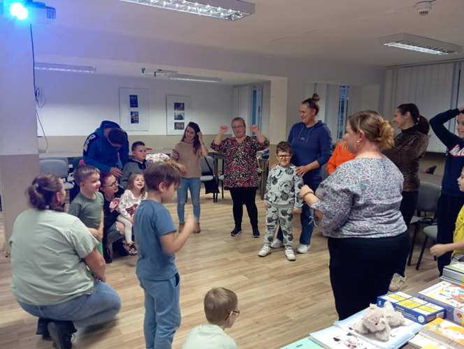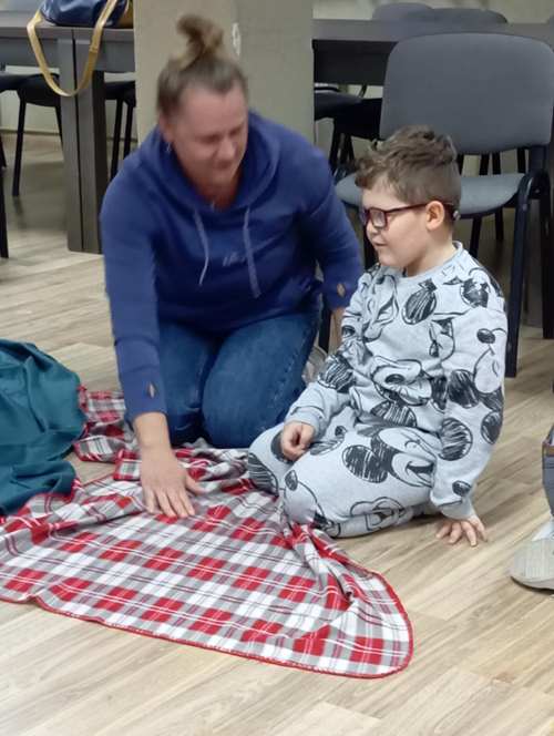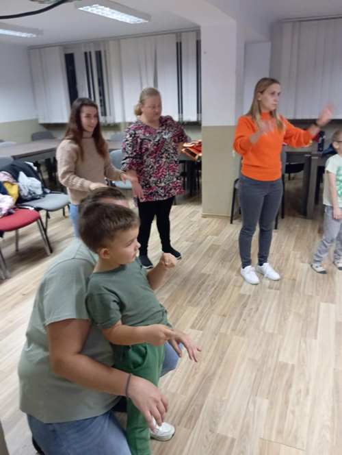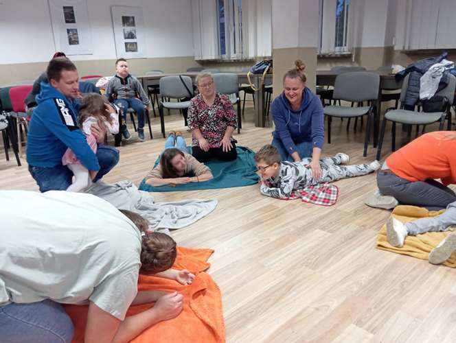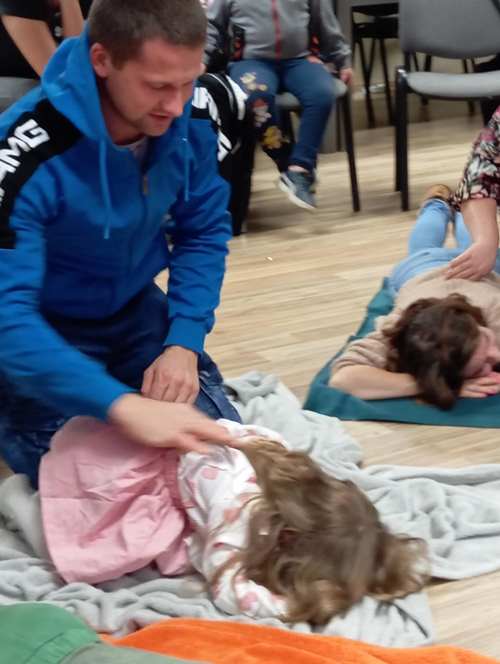 W ramach programu „Za Życiem” w dniu 30.10.2024 r. zorganizowano dwumodułowe Szkolenie dla Rodziców. W pierwszej części spotkania pani Katarzyna Potaczało przeprowadziła warsztaty dla rodziców pt.: „Świat mojego dziecka - zabawy ogólnorozwojowe”. Celem zajęć było zaprezentowanie rodzicom zabaw wspomagających rozwój dziecka poprzez ruch, kontakt emocjonalny i wzrokowy z rodzicem. Rozwijanie u dziecka poczucia bezpieczeństwa, pewności siebie, zaufania a także rozwinięcie świadomości własnego ciała i otaczającej je przestrzeni.
