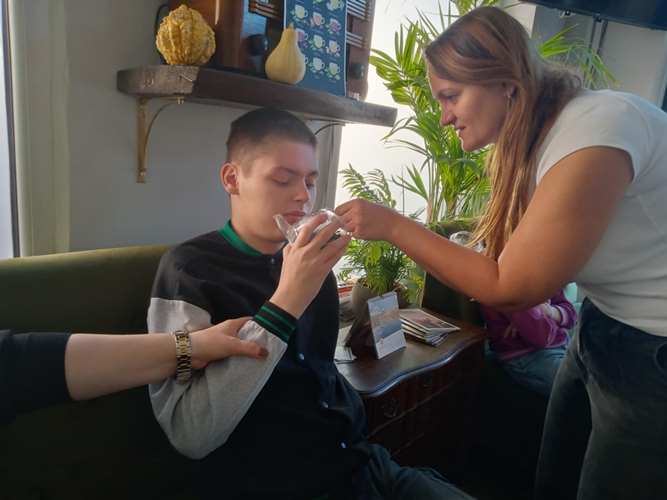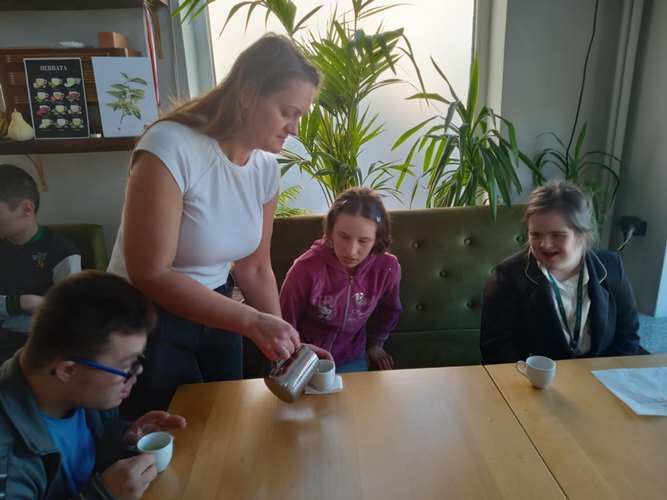 ,,Herbatę się pija, aby zapomnieć o hałasie świata " - tak podaje stare, chińskie przysłowie. Uczniowie klas Szkoły Przysposabiającej do Pracy mieli wyjątkową okazję poznać część z bogatej oferty smaków i aromatów świata herbat. Ponieważ pora roku stosowna to skorzystaliśmy z zaproszenia na warsztaty parzenia i picia herbaty w kawiarni Coffe Housu mieszczącej się przy deptaku miejskim. Panie Iwana i Liliana przygotowały interesującą cześć teoretyczną na temat historii i teraźniejszość świata herbaty. Następnie uczestnicy zapoznali się z procesem parzenia i degustacji tego bogatego w rozmaitość odmian urodzajów napoju. Uczniowie byli zachwyceni wizytą w kawiarni, gdzie zdobyli nową wiedzę i umiejętności. Polecamy wizytę w Coffe Housu.