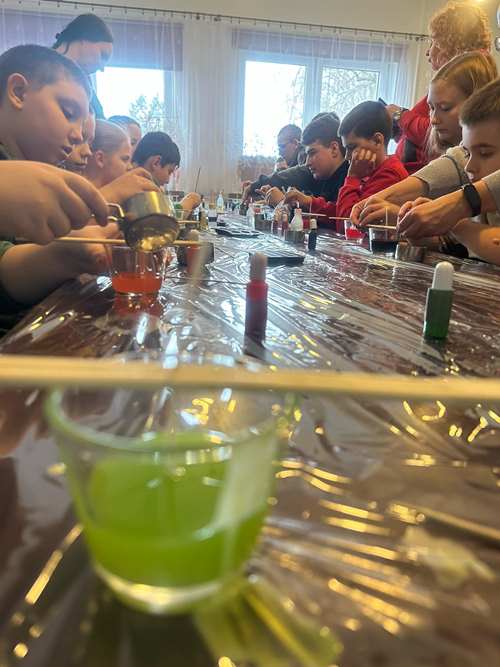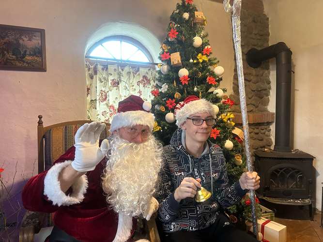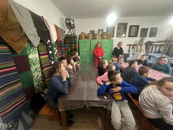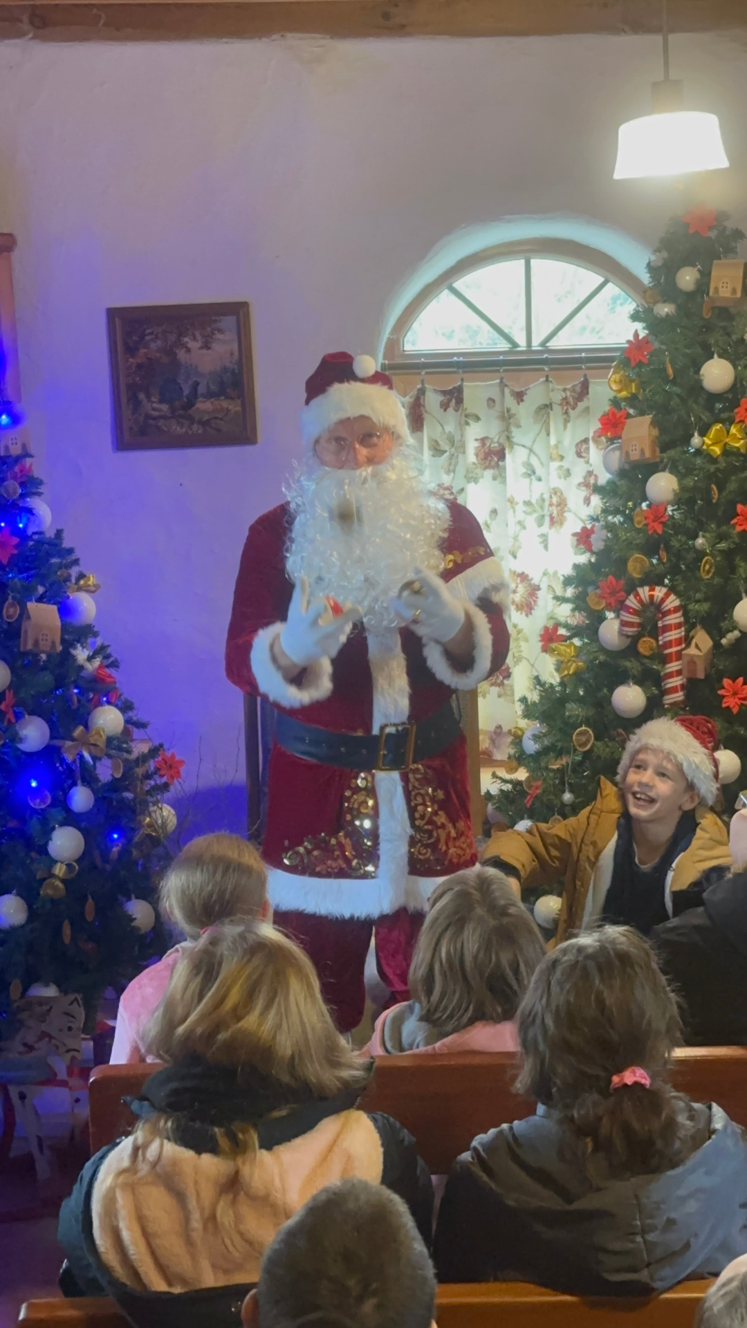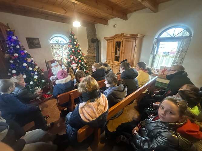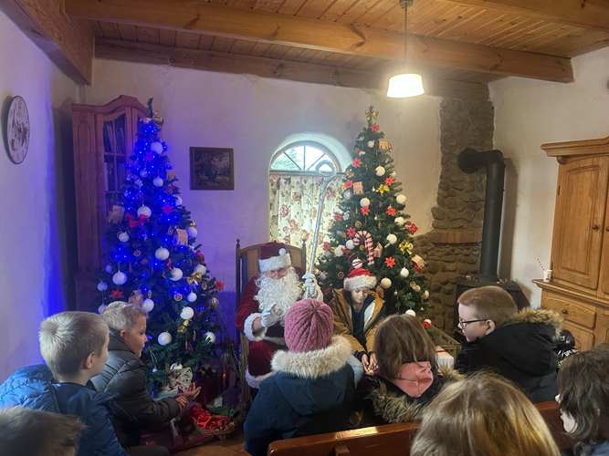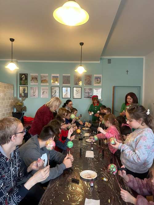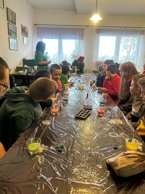 27 listopada 2024 roku uczniowie SP oraz PDP wybrali się do KRAINY RUMIANKU położonej w miejscowości Hołowno na Polesiu Lubelskim, by spotkać się z Mikołajem. W swoim królestwie, uczniów przywitał święty Mikołaj z kubkiem gorącej czekolady. Po ekscytującej rozmowie i zagadkach, dzieci gościły u Elfów na warsztatach „Malowanie bombek”. Dozę ruchu zapewniły skoki na białym dmuchańcu. Odpoczywając, słuchały wykładu Elfa o historii i zwyczajach wigilijno- bożonarodzeniowych. Elfy przygotowały na obiad pieczone kiełbaski. Następnie uczniowie uczestniczyli w kolejnych warsztatach - „Świece sojowe jak deser w szklance”. Pobyt zakończyła świąteczna sesja zdjęciowa oraz zakupy na kiermaszu świątecznym.