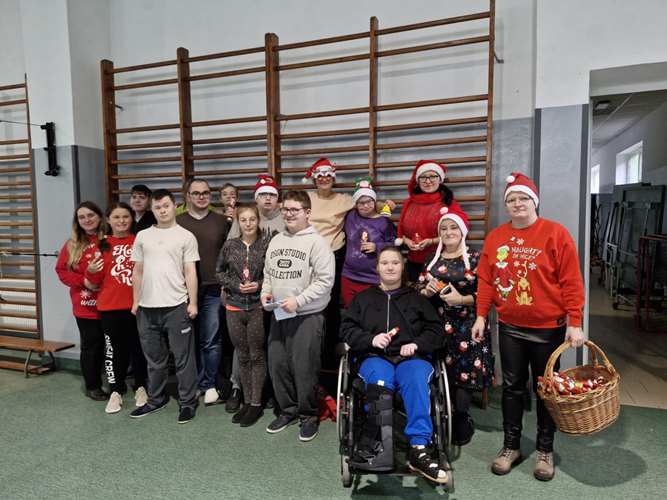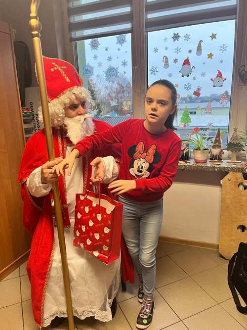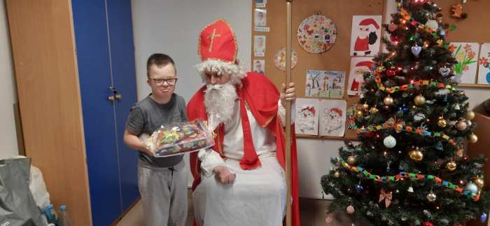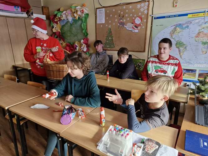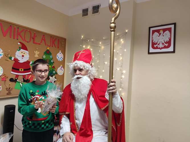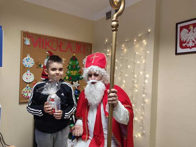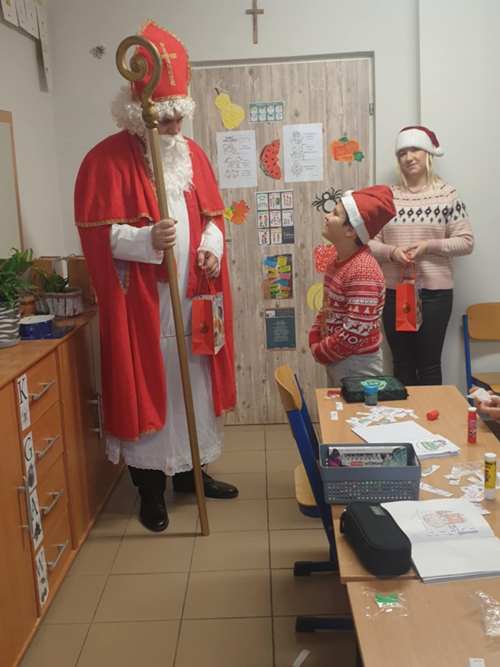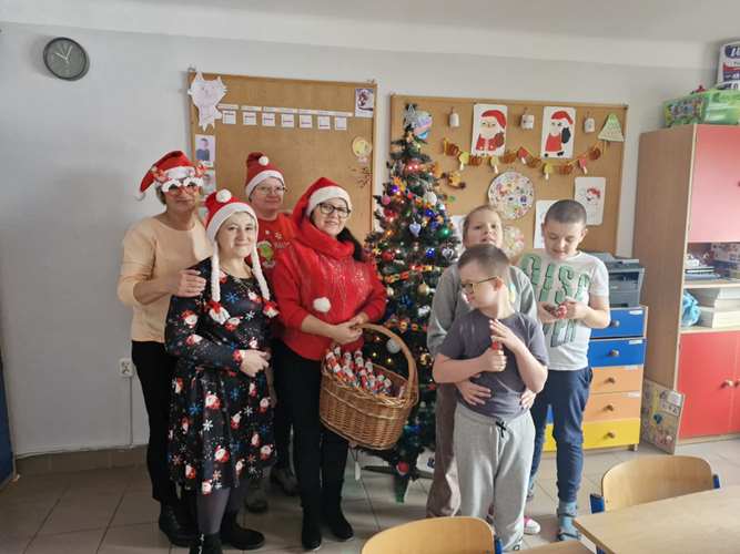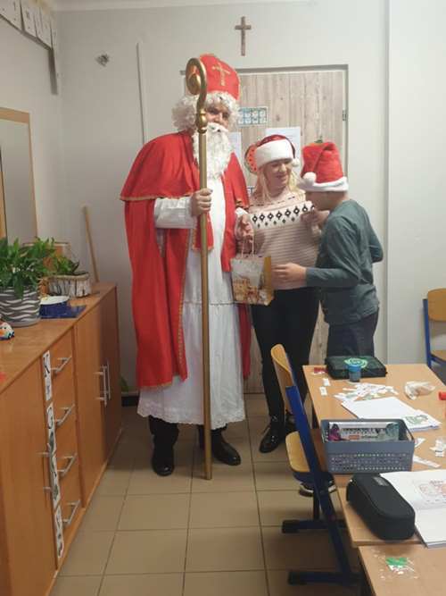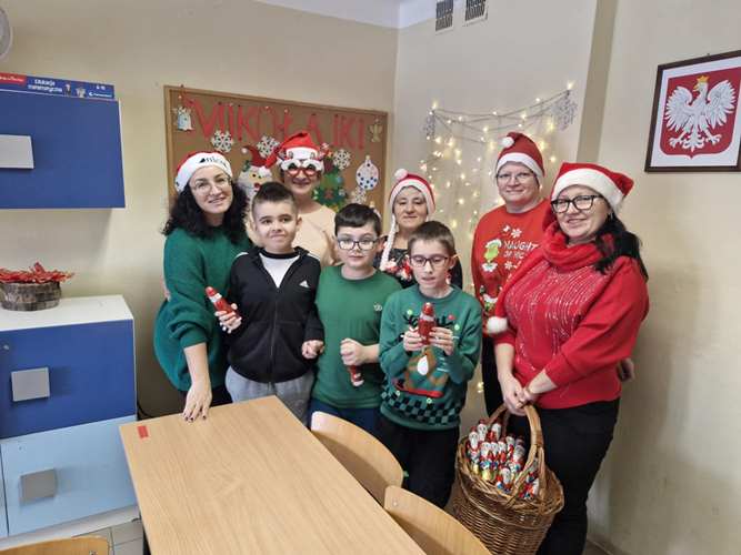 Akcja – Mikołajki zaczęła się od pierwszej godziny lekcyjnej, Święty Mikołaj obdarował najmłodsze dzieci barwnymi paczkam. Tradycyjnie odwiedził uczniów w zespołach rewalidacyjno - wychowawczych, gdzie wzbudził wielkie emocje!  Uczniowie starszych klas również znaleźli, podrzucone w nocy, prezenty. Następnie do akcji wkroczyli nasi kochani rodzice, którzy w świątecznym nastroju, przy dźwiękach dzwoneczków poczęstowali wszystkich czekoladowymi figurkami otrzymanymi właśnie od napotkanego i bardzo zapracowanego Mikołaja. Spotkaniom towarzyszyła świąteczna sceneria oraz radosna atmosfera.