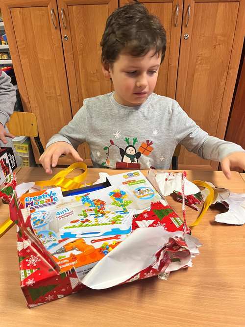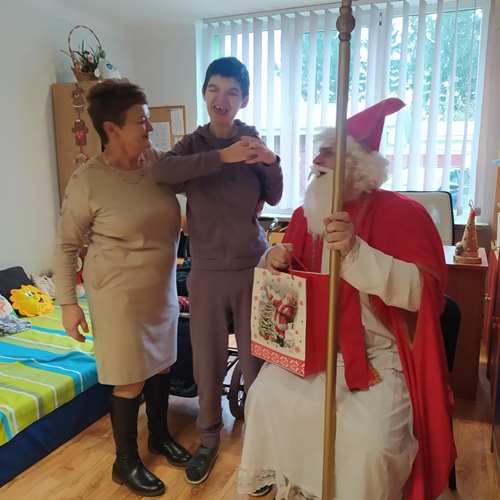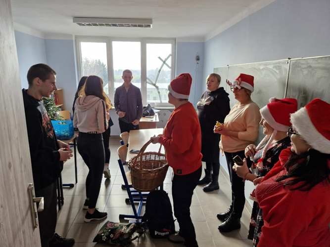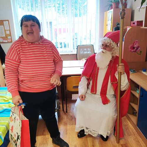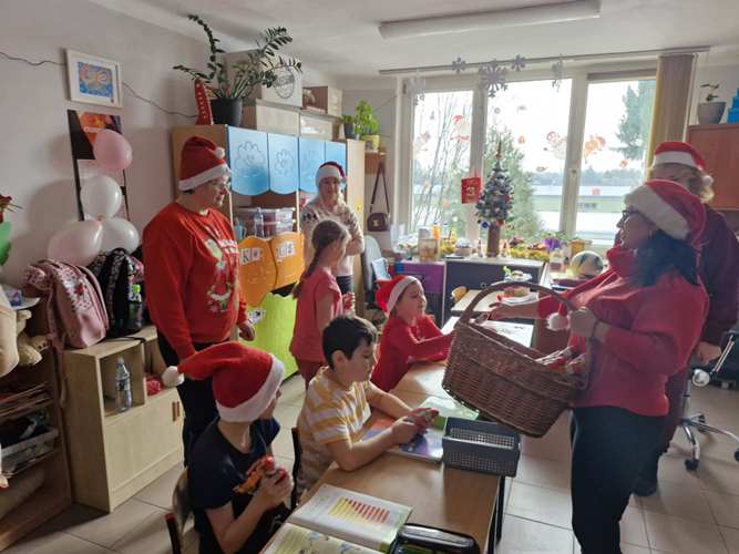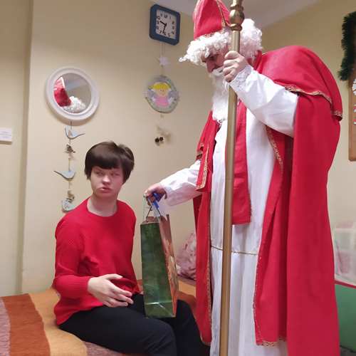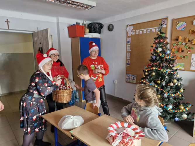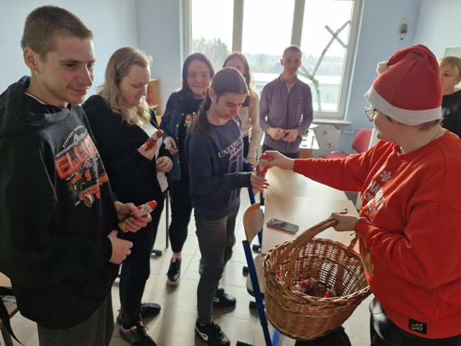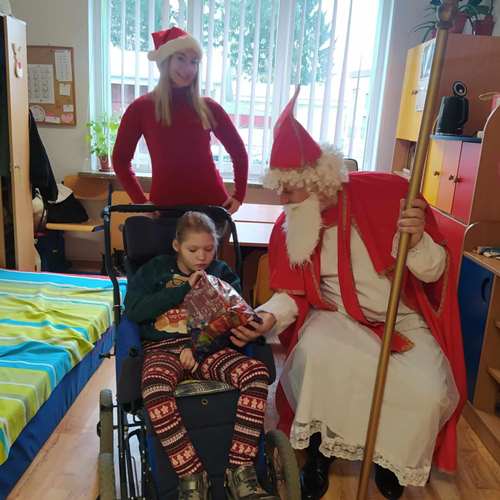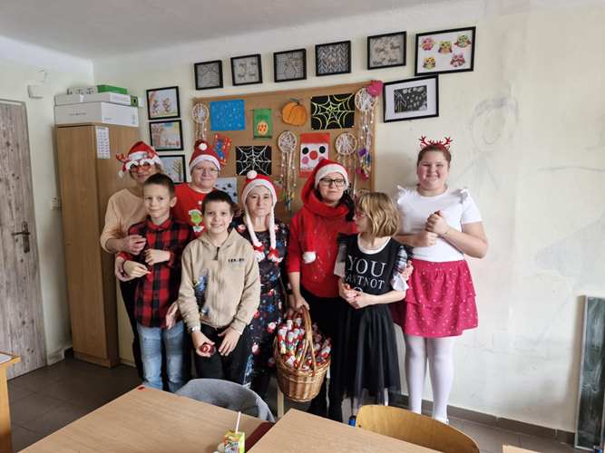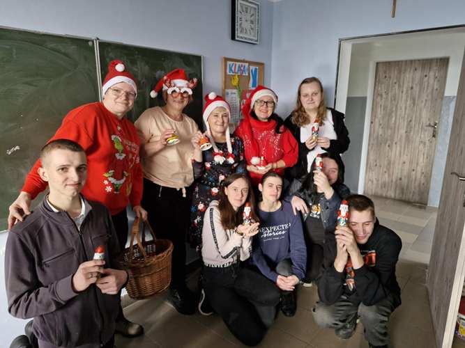 Akcja – Mikołajki zaczęła się od pierwszej godziny lekcyjnej, Święty Mikołaj obdarował najmłodsze dzieci barwnymi paczkam. Tradycyjnie odwiedził uczniów w zespołach rewalidacyjno - wychowawczych, gdzie wzbudził wielkie emocje!  Uczniowie starszych klas również znaleźli, podrzucone w nocy, prezenty. Następnie do akcji wkroczyli nasi kochani rodzice, którzy w świątecznym nastroju, przy dźwiękach dzwoneczków poczęstowali wszystkich czekoladowymi figurkami otrzymanymi właśnie od napotkanego i bardzo zapracowanego Mikołaja. Spotkaniom towarzyszyła świąteczna sceneria oraz radosna atmosfera.