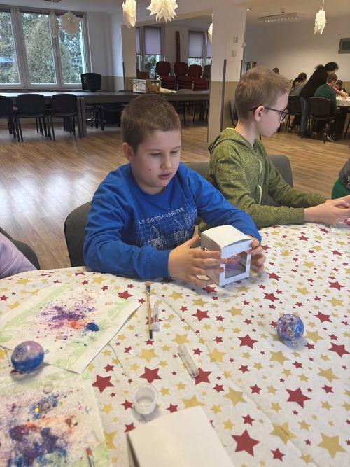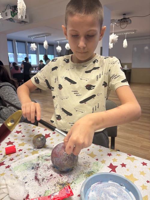11 grudnia 2024 roku w naszej szkole odbyły się warsztaty malowania bombek świątecznych, które wprowadziły uczniów szkoły podstawowej w magiczny, świąteczny nastrój. W wydarzeniu wzięły udział dzieci pełne entuzjazmu i gotowości do twórczego działania. Warsztaty miały na celu rozwijanie zdolności manualnych, pobudzanie kreatywności oraz kultywowanie tradycji związanych z przygotowaniami do świąt. Pod czujnym okiem organizatora uczestnicy tworzyli swoje niepowtarzalne bombki, wykorzystując farby, brokat, wstążki i inne dekoracyjne materiały. Powstały zarówno klasyczne świąteczne wzory, jak i oryginalne kompozycje inspirowane wyobraźnią dzieci. Warsztaty były nie tylko doskonałą zabawą, ale także okazją do nauki, wspólnego spędzenia czasu i budowania świątecznej atmosfery. Dzieci wykazały się ogromną kreatywnością, a w ich sercach zagościła radość, która z pewnością towarzyszyć im będzie przez całe święta.