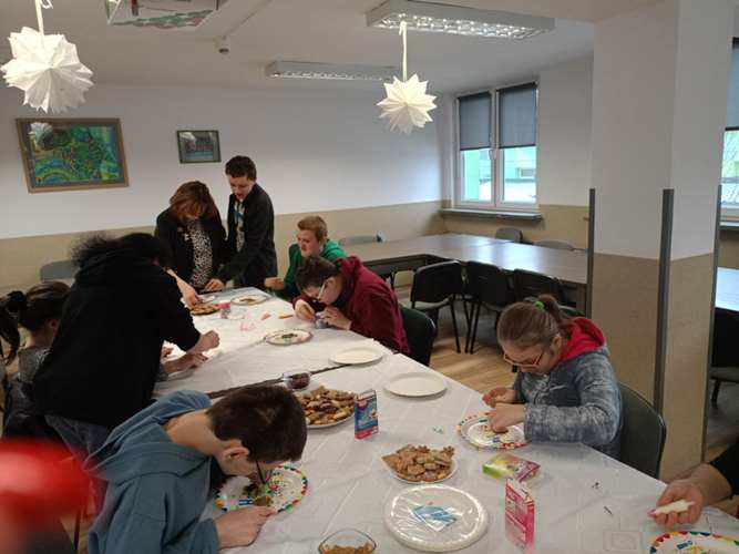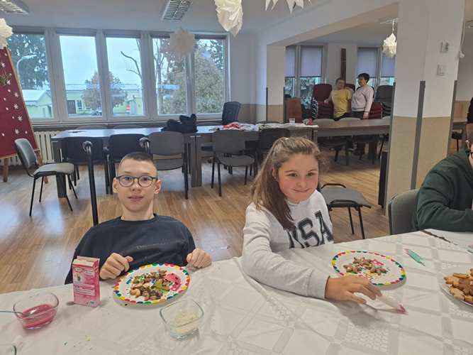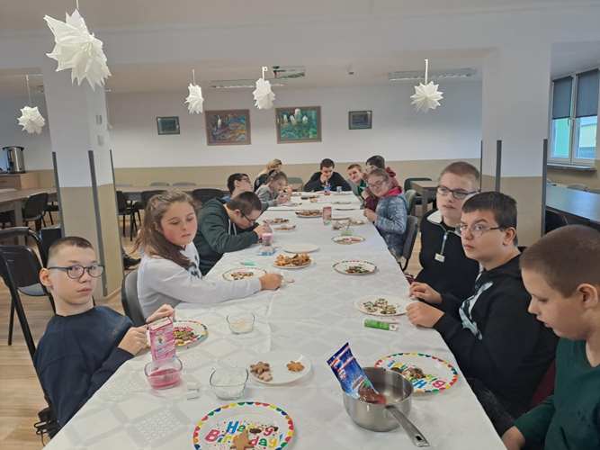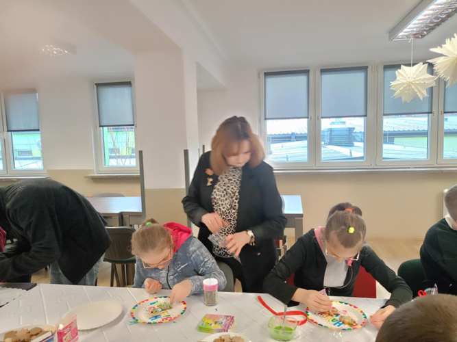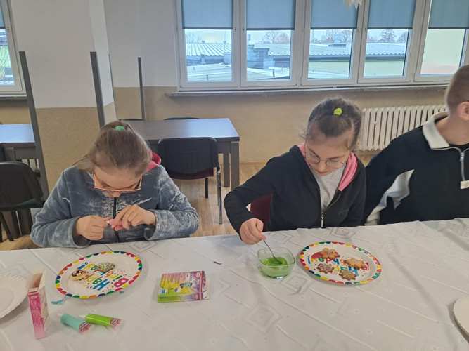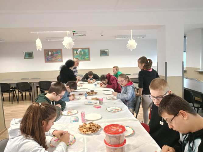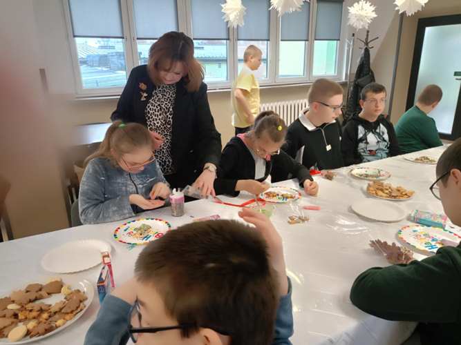 11 grudnia w naszej szkole odbyły się warsztaty dla uczniów klas IV-VII pt. PIERNIKOWE CUDA. Dzieci już podczas zajęć kulinarnych zapoznały się z tradycją wypieku pierników. Przypomniały sobie tajniki powstawania piernikowego ciasta, rozpoznawały różnymi zmysłami przyprawy do wypieku pierniczków. Upieczone przez uczniów ciasteczka, dekorowali. Lukrowały i ozdabiały według własnej inwencji twórczej. Efekty były zaskakujące, masa słodkiej zabawy, pozytywna energia, zapach przypraw korzennych oraz świątecznych piosenek w tle. Część pierniczków została ze smakiem zjedzona przez dzieci a reszta wytworów została zapakowana w dekoracyjne woreczki z wstążeczką i zabrana przez dzieci do domu. Podekscytowani, pełni wrażeń, zadowoleni mogli śmiało powiedzieć, ze był to wspaniały dzień.
