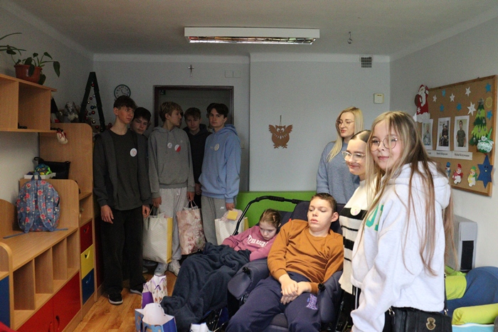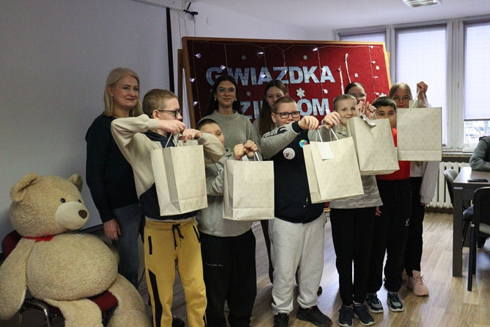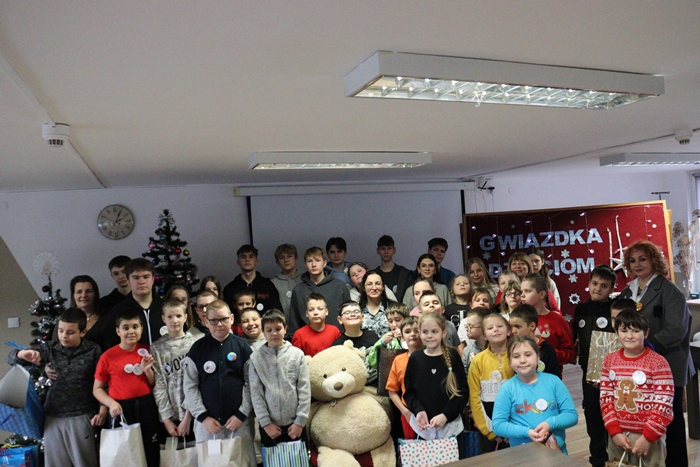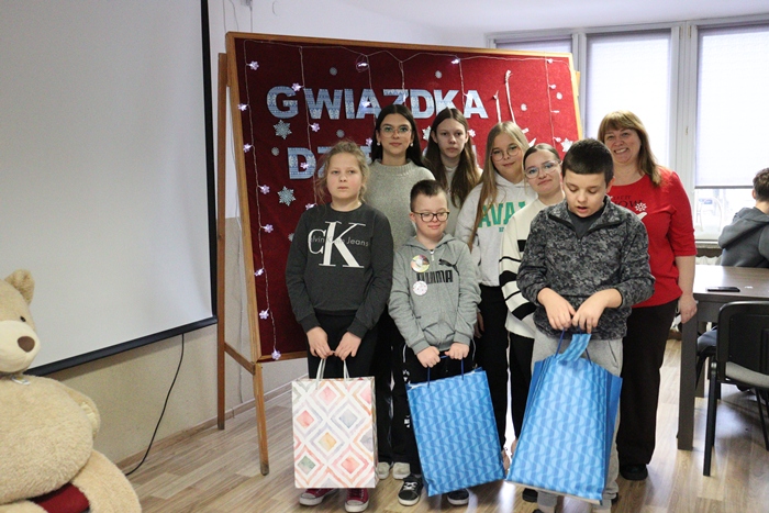 17 stycznia 2025 r. w naszej szkole pojaśniało a to za sprawą niecodziennej wizyty wysłanników świątecznej gwiazdki. Do najmłodszych uczniów szkoły podstawowej i zespołów rewalidacyjno – wychowawczych zawitali wyjątkowi goście Uczniowie klasy I C, I Liceum Ogólnokształcącego im. ks. Stanisława Staszica w Hrubieszowie wraz z wychowawczynią pania Anną Pękowską. By poznać się bliżej dzieci i młodzież uczestniczyli w warsztatach plastycznych i wykonali własnoręcznie przypinki okolicznościowe. Następnie wszyscy zebrali się pod choinką gdzie na dzieci czkały przesympatyczne Elfy oraz prześliczne prezenty. Ta piękna Akcja pod hasłem Młodzież – Dzieciom odbyła się po raz 18!