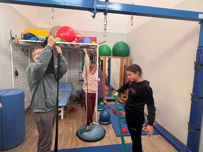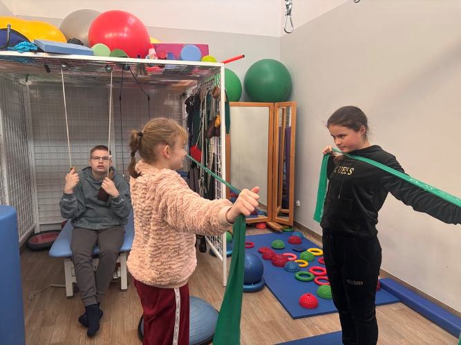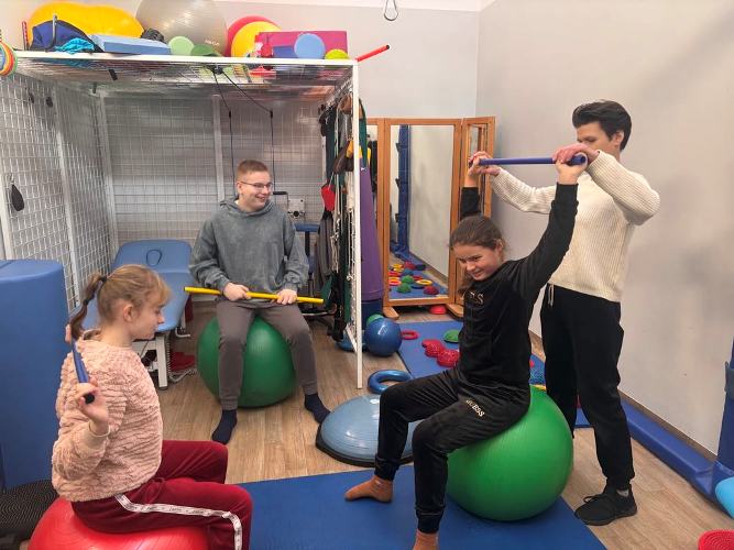 W naszym Ośrodku cyklicznie, odbywają się zajęcia propagujące wśród uczniów Szkoły Przysposabiającej do Pracy pt. „Trzymaj się prosto”. Najlepszym sprzymierzeńcem w zapobieganiu wadom postawy jest ruch, czyli aktywność fizyczna. Bierny styl życia, nadmierne korzystanie ze środków lokomocji sprzyjają powstawaniu nieprawidłowości w kształtującym się kręgosłupie dziecka. Uczeń dużo czasu spędza w szkole i to głównie w pozycji siedzącej. Bardzo istotne jest to, aby środowisko szkolne sprzyjało prawidłowemu rozwojowi młodego człowieka. Dlatego ćwiczenia śródlekcyjne (nawet króciutkie), zajęcia wychowania fizycznego i zajęcia rehabilitacyjne stanowią wypoczynek dla umysłu dziecka. Ponadto ruch odpowiednio dobrany pod względem charakteru, miejsca i siły oddziaływania staje się jednym z czynników wyrównawczych.