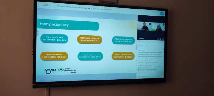 Uczniowie uczestniczyli również w lekcji on-line na temat „Przemoc i cyberprzemoc rówieśnicza - jak ją rozpoznać i jak reagować?”. W trakcie zajęć uczestnicy dowiedzieli się czym jest przemoc i cyberprzemoc rówieśnicza, jakie przybiera formy i jakie mogą być jej konsekwencje dla osób doświadczających, świadków i sprawców przemocy.