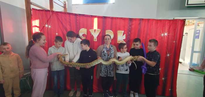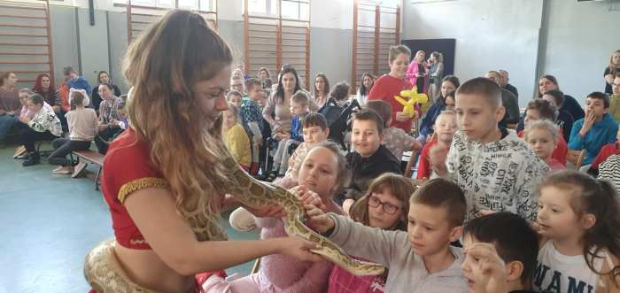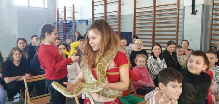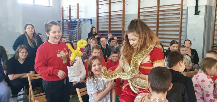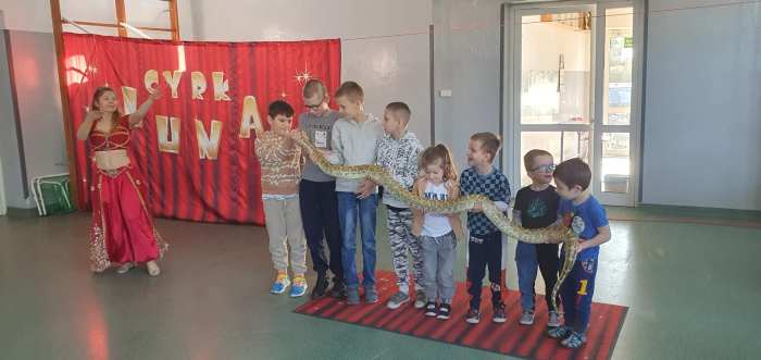 6 marca 2025 w czwartek gościł w naszej szkole Cyrk LUNA. Uczniów bawił klown Erwin, zadziwił wszystkich swą zręcznością. Słoń Jumbo chwalił się gracją. Taniec ze skrzydłami wykonała pani Loli. A na koniec niespodzianka- tresura pytona tygrysiego, który pozował do zdjęć z chętnymi uczniami.