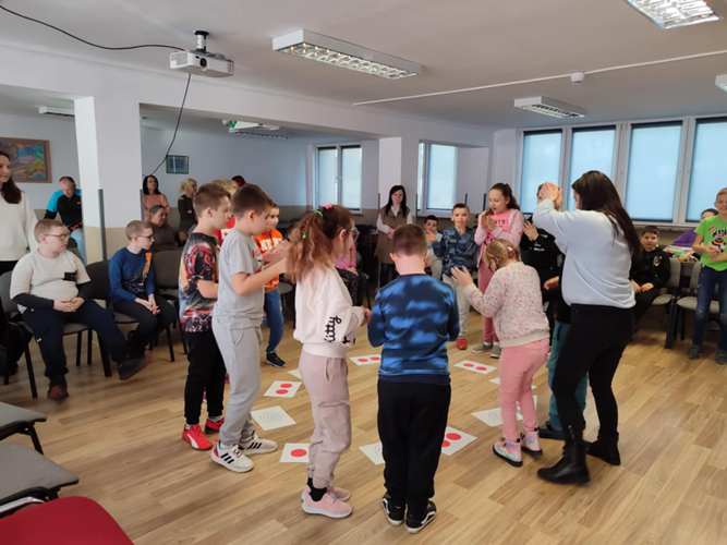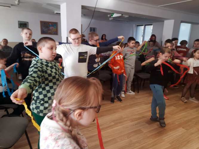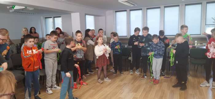 W trakcie trwających zajęć uczniowie uczyli się rozpoznawać dźwięki wysokie i niskie jak też natężenie mocno i delikatnie. Rymowanki słowno – ruchowe oraz piosenki, pt: „Koło”, „Pada deszczyk” czy „Ojciec Wirgiliusz” cieszyły się ogromnym zainteresowaniem wśród nich i powodowały wzmożoną aktywność. Uczestnicy wykazywali dużą gotowość do samodzielnego wykonywania zadań, potrafili zaprezentować się na forum grupy, prawidłowo reagując na zachętę przy wsparciu i pozytywnych wzmocnieniach ze strony prowadzących. Bardzo chętnie brali udział w zabawach oddechowych oraz współpracowali w małych grupkach. Takie zajęcia utwierdzają nas logopedów w przekonaniu, iż zawód ten jest bardzo potrzebny i pożądany natomiast zaangażowanie uczestniczących napawa nas ogromną radością.