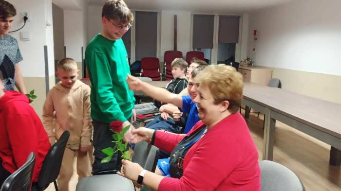 6 marca w internacie odbyły się obchody Dnia Kobiet. Kolorowo ubrani i przejęci wychowankowie z dużym zaangażowaniem i staraniem przedstawili humorystyczną część artystyczną. Nie zabrakło zatem męskich narzekań na kobiety, ale tylko po to, by uznać, że bez kobiet świat byłby znacznie gorszy. Wybuchy śmiechu wywołał uczeń przebrany za płeć piękną, aby ukazać kobiecy punkt widzenia. Najważniejszym punktem wieczoru były jednak szczere życzenia złożone paniom i wychowankom przez męską część społeczności internackiej i wręczenie róż oraz słodkich upominków jako podziękowanie za codzienną serdeczność, pomoc i opiekę. Obchody Dnia Kobiet w internacie stanowią ważną podstawę do promowania równości płci, budowania wspólnoty, wzajemnego wspierania i zacieśniania więzi między wychowankami.