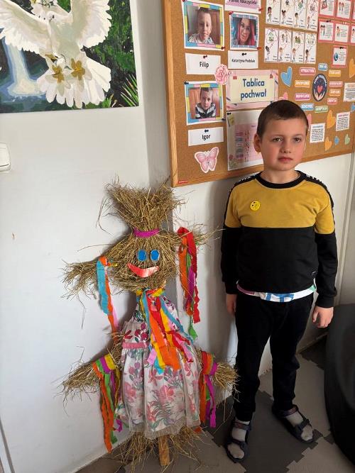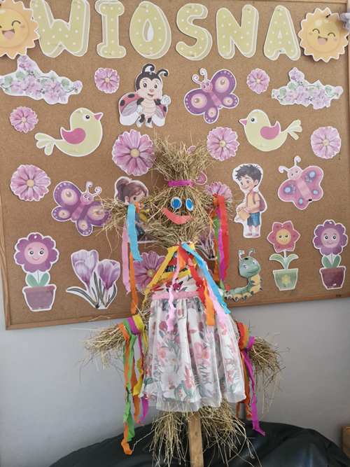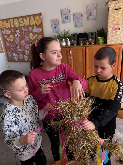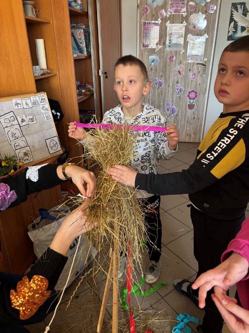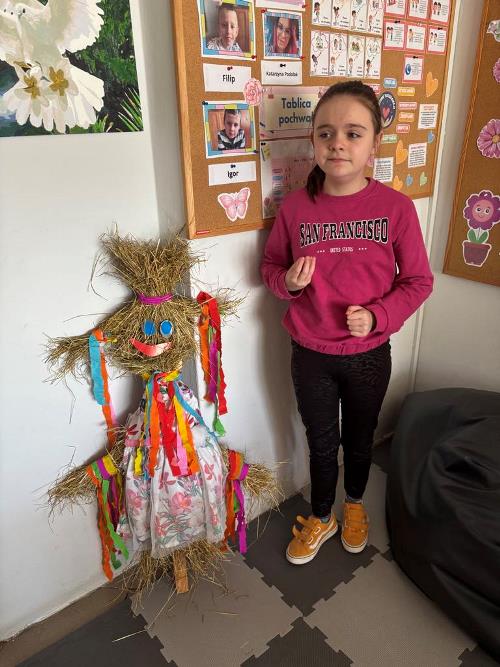 Dzieci z wielkim zaangażowaniem i radością uczestniczyły w zajęciach, chętnie współpracując i dzieląc się pomysłami. Tworzenie Marzanny było dla nich nie tylko okazją do rozwijania zdolności manualnych, ale również sposobem na integrację i wspólne działanie. Praca w grupie sprzyjała budowaniu relacji oraz nauce odpowiedzialności za wspólne zadanie. Wydarzenie przebiegło w miłej i radosnej atmosferze. Uczniowie byli dumni ze swojego dzieła i z niecierpliwością oczekiwali momentu symbolicznego pożegnania zimy. Dzięki takim inicjatywom dzieci nie tylko rozwijają swoje umiejętności, ale również uczą się doceniać i pielęgnować polskie tradycje.
