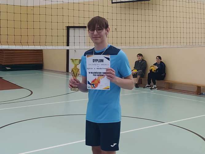 W dniu 25.03.2025 r. reprezentacja Naszej Szkoły wzięła udział w Mistrzostwach Województwa Lubelskiego w Piłce Siatkowej. W turnieju rywalizowało 4 drużyny. Nasza reprezentacja nie dała żadnych szans rywalom i odniosła wielki sukces zajmując I MIEJSCE. W turnieju wzięli udział: Kamil Kul, Piotr Rymarz, Rafał Nowosad, Jakub Kluczyk, Kacper Ganc, Antoni Złotko, Dominik Bucior.