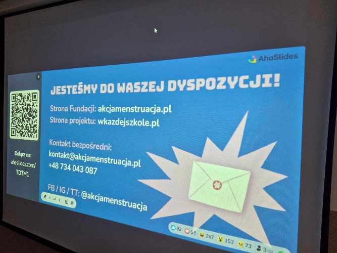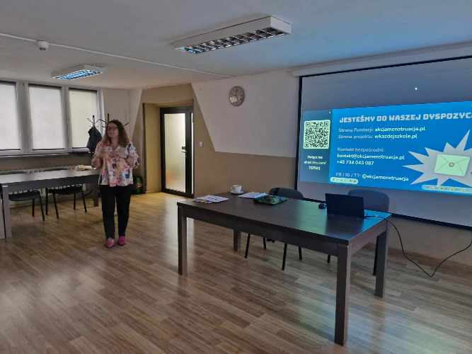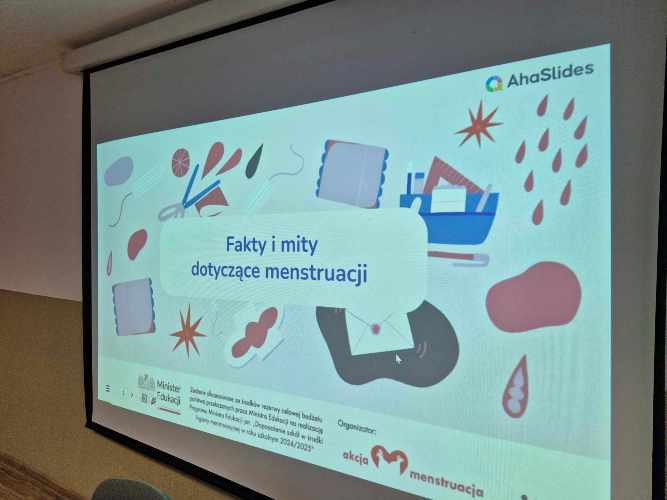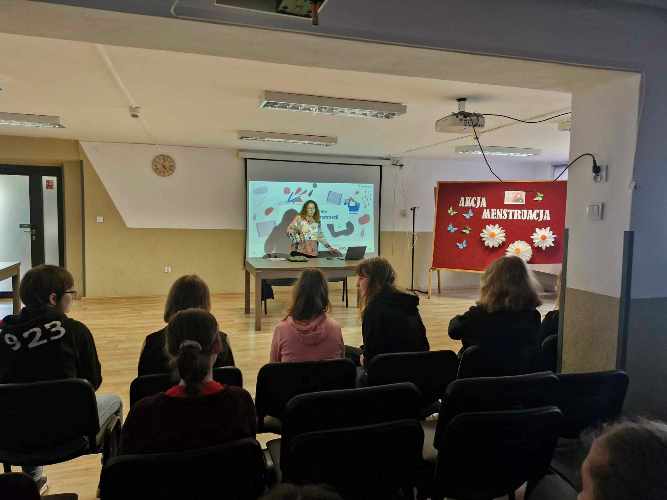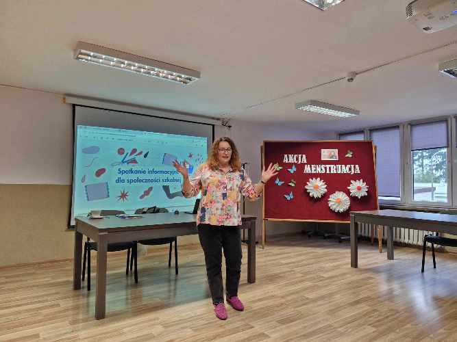 Pealizując założenia programu w poniedziałek 31 marca, pani Karolina Suska - edukatorka menstruacyjna, przeprowadziła warsztaty z uczennicami oraz spotkanie informacyjne dla rodziców i nauczycieli.