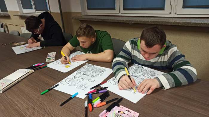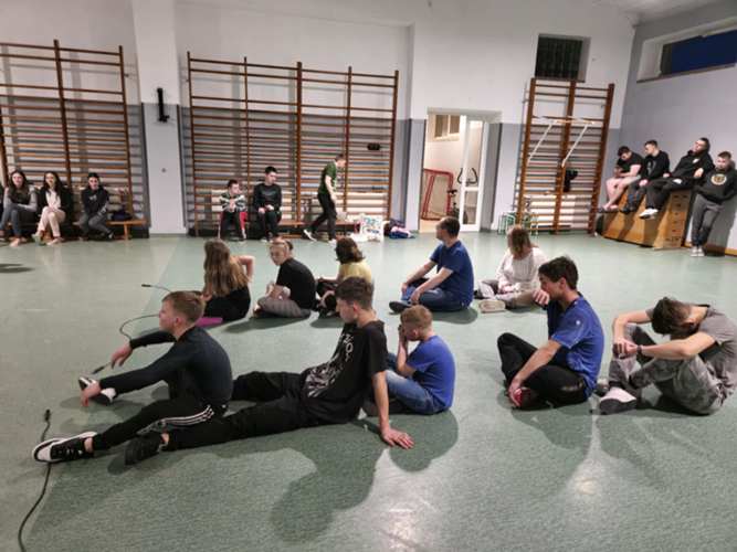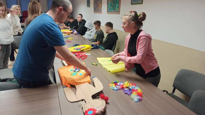 Zainspirowani wiosną wychowankowie internatu uczestniczyli w zajęciach, na których mieli możliwość wykazać się aktywnością ruchową w konkurencjach: sadzimy ziemniaki, przenosimy piłki na czas, siejemy rzodkiewkę, papierowa bitwa. Chętni wychowankowie rywalizowali w dwóch drużynach, wykazując duże zaangażowanie, jednocześnie zachowując zasady fair play. Zajęcia rozpoczęły się wykonaniem postaci Wiosny przybranej przez wychowanków w barwne, kolorowe szaty oraz kwiaty - to dowód naszej radości z powodu jej - nadejścia. Celem przeprowadzonych zajęć było integrowanie między grupowe wychowanków podczas osiągania wyznaczonych zadań, usprawnianie ruchowe ,manualne oraz aktywne spędzenie czasu.