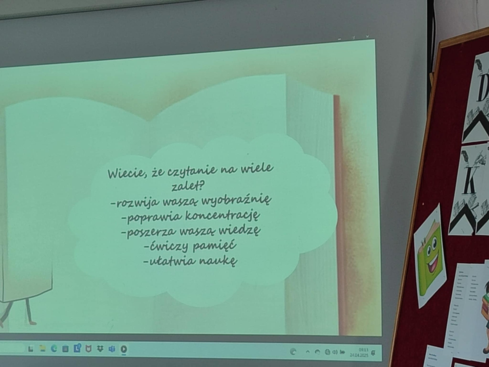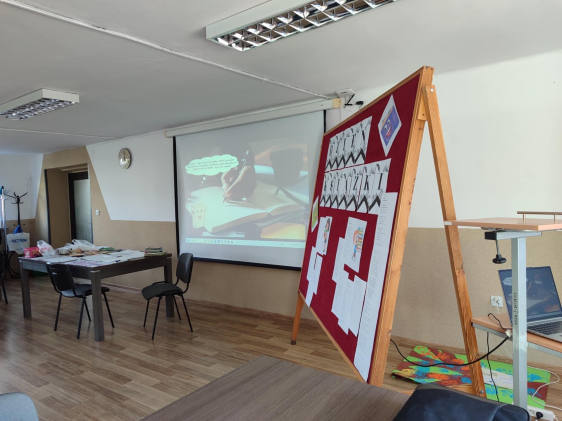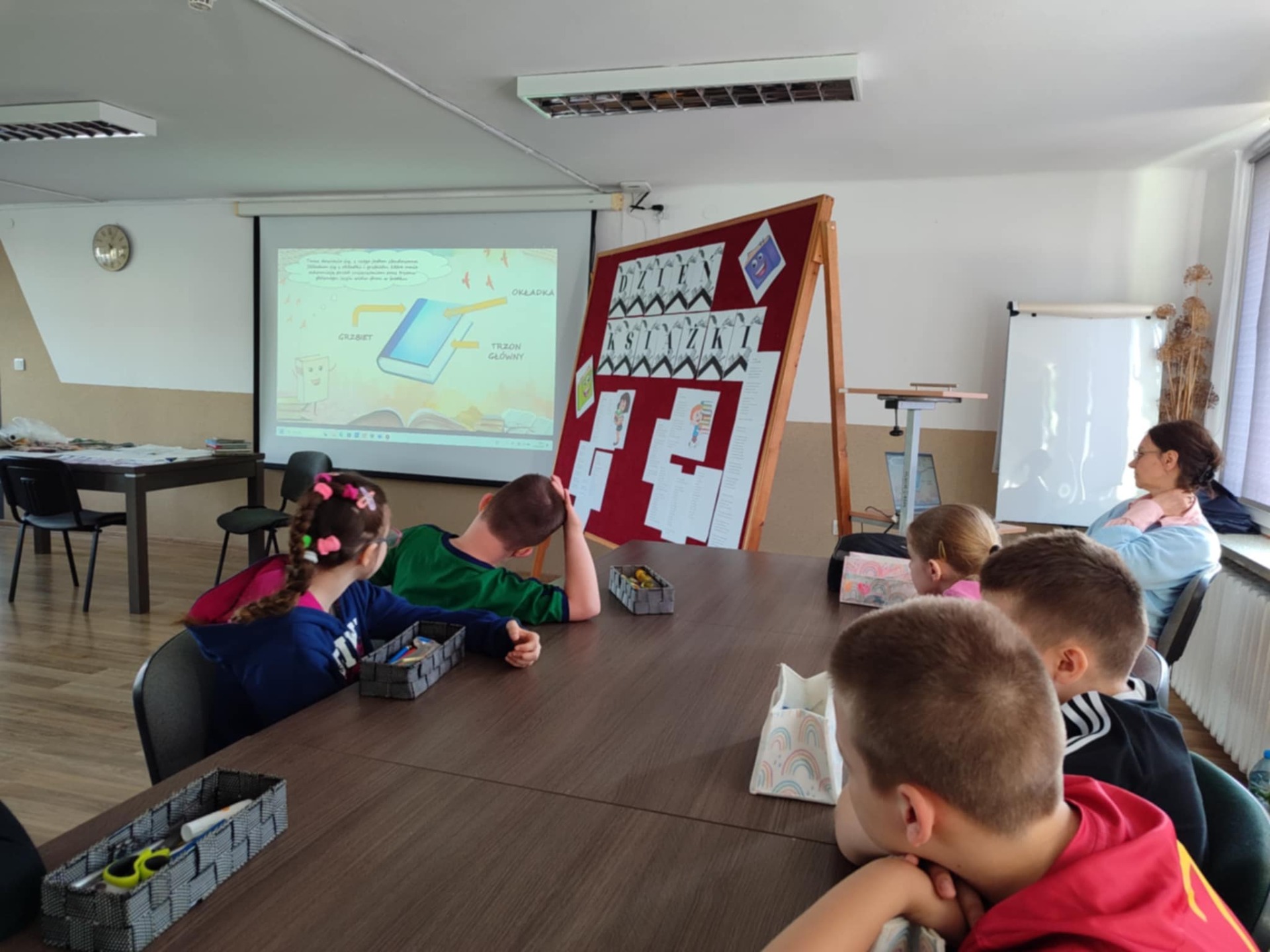W naszej szkole jak co roku obchodzimy Światowy Dzień Książki i Praw Autorskich, święto to przypada na 23 kwietnia. Z okazji tego Święta została zorganizowana impreza czytelnicza. Udział w niej brali uczniowie klas 1-3 szkoły podstawowej. Program imprezy był bardzo bogaty, każdy z uczestników mógł znaleźć coś dla siebie. Na wstępie odbyła się krótka rozmowa na temat dnia książki. Następnie został wyświetlony film pt.: "Wszystko o książce". Z filmu uczniowie dowiedzieli się jak powstaje książka i kto ma wpływ na jej ostateczny kształt. Elementy składowe książki, historia piśmiennictwa oraz zasady korzystania z książki. W dalszej części warsztatów uczniowie skupili się na zadaniach dotyczących zaprezentowanego filmu, znajomości literatury dziecięcej. Odpowiadali na pytania, wyszukiwali i łączyli bohaterów książek z tekstem. Brali udział w wielu innych ciekawych konkurencjach.