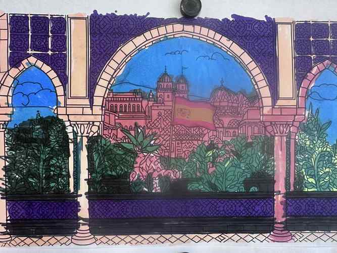 • „Mozaika– projektowanie wzorów inspirowanych Alhambrą” – uczniowie odkrywali piękno geometrycznych ornamentów słynnego pałacu w Grenadzie.