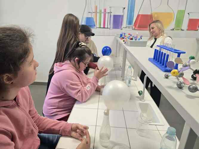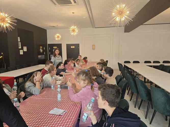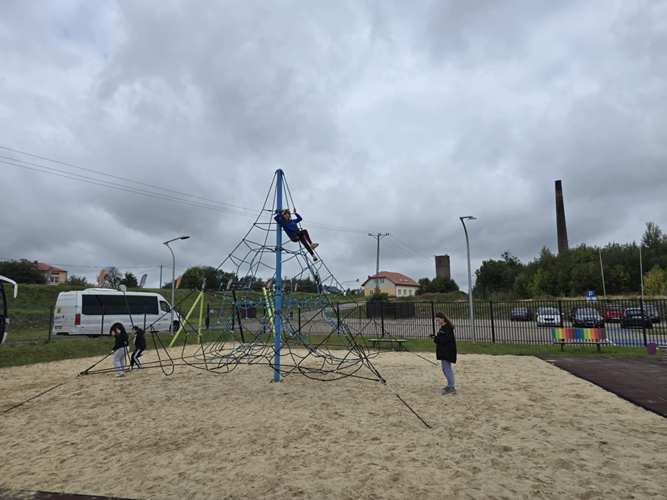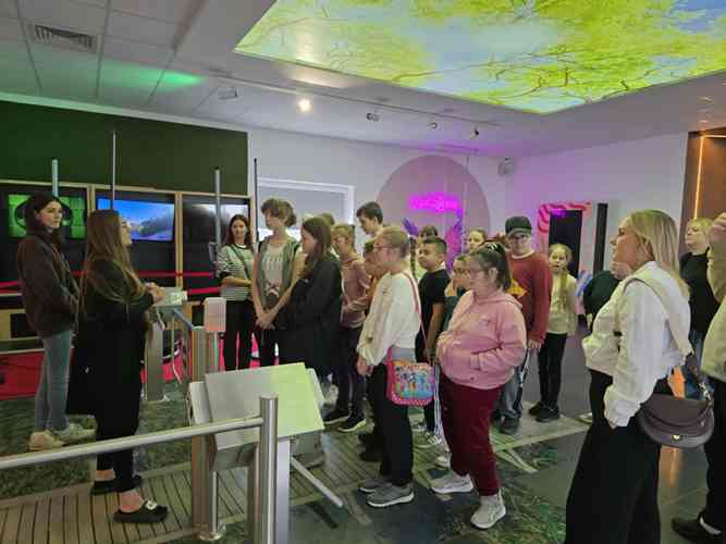 W dniu 19.09. 2025 r. uczniowie pięciu klas szkoły podstawowej wybrali się na wycieczkę do Parku Żywiołów. Pobyt rozpoczęliśmy od zabaw na świeżym powietrzu. Dzieci miały do dyspozycji tajemniczy labirynt, zjeżdżalnie, huśtawki, karuzele, tyrolki oraz wspinaczkową pajęczynę. Kolejną atrakcją były sale doświadczalne, w których dzięki najnowocześniejszej technologii wirtualnej i rozszerzonej rzeczywistości dzieci mogły samodzielnie skomponować muzykę lasu, zobaczyć oczyma zwierząt, „dotknąć” jelenia, czy zająca, smakować to, co najbardziej kojarzy się z Roztoczem. Następnie udaliśmy się do Filokandu, gdzie uczniowie czynnie spędzili czas na zjeżdżalniach i w tunelach przeszkód. Niesprzyjająca pogoda utrudniła zwiedzanie Parku Miniatur Kresowych. Dzieci otrzymały w pakiecie zabawy i eksperymenty w sali chemicznej gdzie same wytworzyły powietrze, które nadmuchało balon i korzystajac z pomocy pań, stworzyły barwnie wybuchające, mini wulkany. W sali fizycznej natomiast zmieniały nurt wody przy pomocy pałek kinetycznych a także mogły doświadczyć przeskoku iskier.