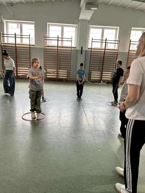 Program Erasmus jest przykładem praktycznej pracy nad integracją grupy opartej na współpracy i wspólnym działaniu. Dzięki niemu uczestnicy projektu „Kolejny krok ku zmianie-mobilność kadry PZPSW w Hrubieszowie” (2024-1-PL01-KA122-SCH-000229302), który jest dofinansowany przez Unię Europejską, nauczyli się funkcjonować w środowisku wielokulturowym a doświadczenia z tych zajęć były inspiracją do przeprowadzonych w dniu 23.09.2025 r. w sali gimnastycznej zajęć budujących tolerancję, empatię i otwartość wśród uczniów szkoły podstawowej naszego Ośrodka. Zajęcia ruchowe były świetnym połączeniem aktywności fizycznej z budowaniem więzi w grupie.
