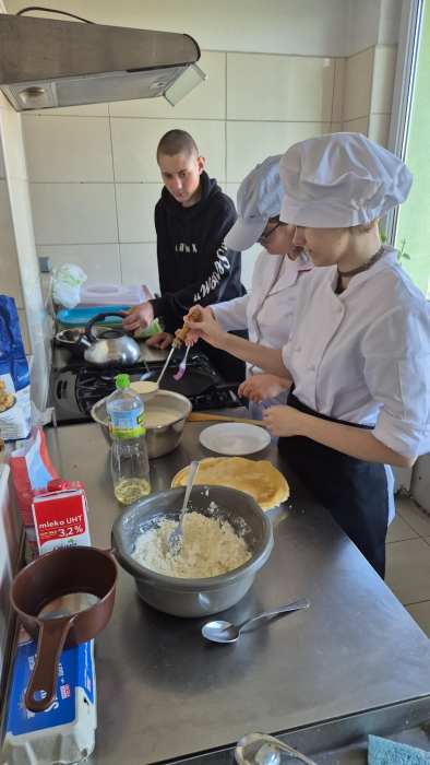 W dniu 24 września 2025 r. odbyły się warsztaty kulinarne poświęcone kuchni hiszpańskiej, zajęcia zrealizowano z wykorzystaniem metod poznanych w czasie projektu Erasmus+ "Kolejny krok ku zmianie - mobilności kadry PZPSW w Hrubieszowie" (20241-PL01-KA-122-SCH000229302) dofinansowanego przez Unię Europejską. dla uczniów naszej szkoły. Zajęcia przeprowadzono z uczniami szkoły branżowej I stopnia i miały na celu przybliżenie uczestnikom kultury kulinarnej Hiszpanii oraz rozwijanie umiejętności praktycznych w zakresie gotowania.