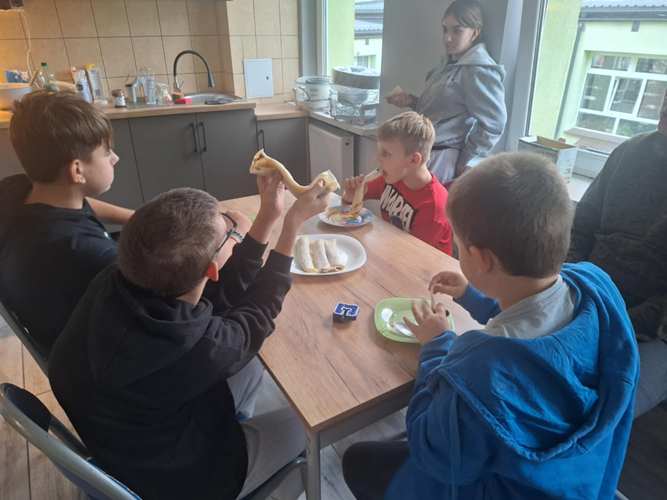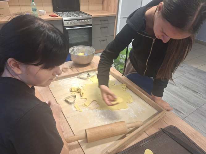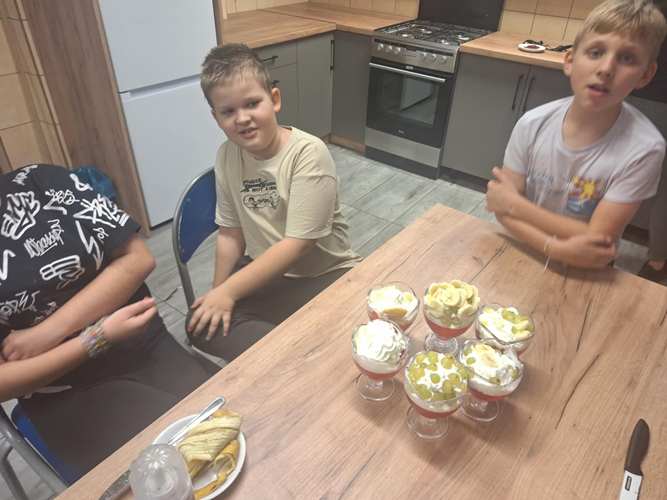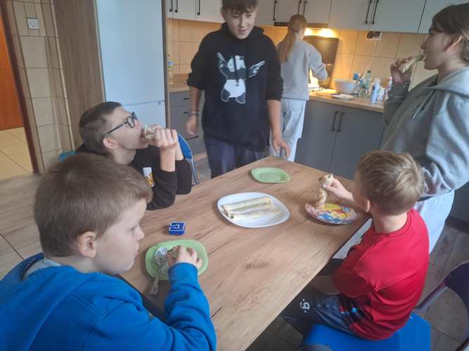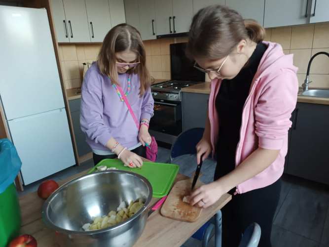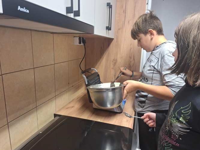 W miesiącu październiku w internacie odbyły się zajęcia kulinarne poświęcone pieczeniu ciast i przygotowywaniu deserów. Wychowankowie, pracując w małych grupach, mieli okazję rozwijać swoje umiejętności kulinarne, uczyć się współpracy, dzielenia obowiązków oraz odpowiedzialności za wspólne zadania. Podczas zajęć przygotowywano między innymi: szarlotkę, roladę jabłkową, ciasta czekoladowe, kruche ciasteczka duszki, naleśniki, galaretki z owocami oraz gofry. Uczestnicy z dużym zaangażowaniem wybierali przepisy, odważali składniki i dekorowali gotowe wypieki. W trakcie wspólnej degustacji panowała miła, domowa atmosfera. Zajęcia przyniosły wiele radości i satysfakcji, a także stanowiły doskonałą okazję do integracji grupy oraz rozwijania praktycznych umiejętności przydatnych w codziennym życiu.