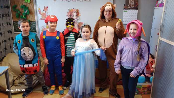 W Światowym Dniu Postaci z Bajek nasza szkoła zamieniła się w krainę fantazji! Na korytarzach pojawili się barwni bohaterowie: od księżniczek, zwierzaków po super bohaterów. Dzieci z wielkim zaangażowaniem prezentowały swoje stroje. Jury miało trudne zadanie, by wybrać najbardziej kreatywne przebrania, ale tak naprawdę każdy uczestnik zasługiwał na uznanie. Na zakończenie, na wszystkich czekały drobne, upominki, które osłodziły ten magiczny dzień.