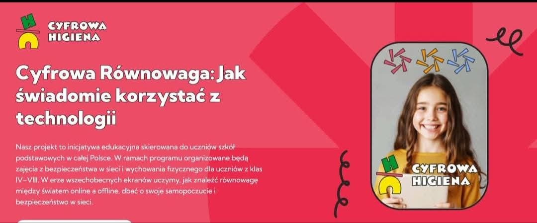 Z radością informujemy, że nasza szkoła zakwalifikowała się do udziału w ogólnopolskim programie „Higiena Cyfrowa 2025”, organizowanym przez NASK – Państwowy Instytut Badawczy oraz Fundację Orły Sportu. Higiena cyfrowa to projekt edukacyjny promujący świadome i bezpieczne korzystanie z internetu oraz technologii cyfrowych. W jego ramach uczniowie uczestniczyli w zajęciach dotyczących m.in. bezpieczeństwa w sieci, zdrowego balansu między życiem online i offline oraz sposobów ochrony przed zagrożeniami cyfrowymi. Celem programu jest kształtowanie świadomych i bezpiecznych nawyków korzystania z technologii cyfrowych wśród dzieci i młodzieży. Inicjatywa ma wspierać uczniów, nauczycieli i rodziców w budowaniu równowagi między światem online i offline, rozwijaniu kompetencji cyfrowych oraz promowaniu zdrowego stylu życia w erze technologii.