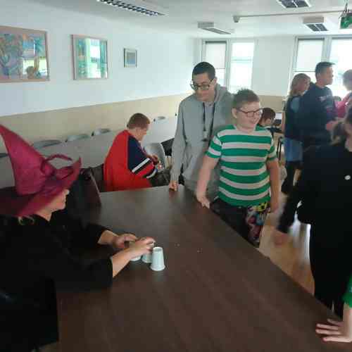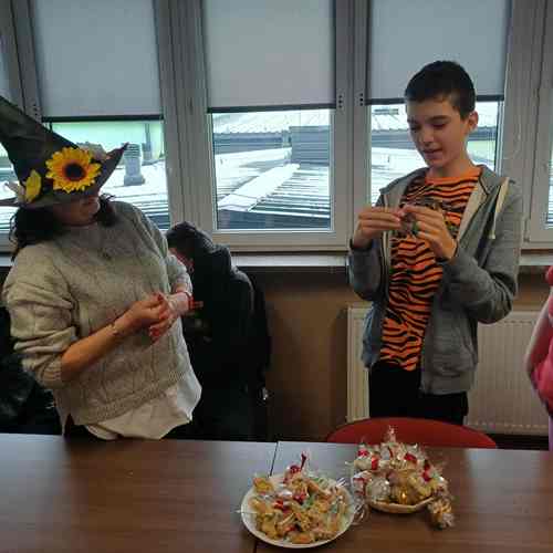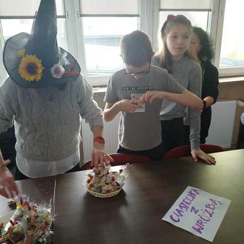 Wtorek w naszej szkole przebiegał pod hasłem wróżb i zabaw andrzejkowych. czarów i magii. Wszyscy uczniowie zebrali się w jednym celu - wywróżyć przyszłość. Każdy uczestnik andrzejkowych szaleństw z niecierpliwością przekłuwał papierowe serce, aby odczytać imię swojej sympatii, losował magiczne babeczki w których były bileciki z nazwami zawodów przyszłości. Można było wybrać kubeczek, w którym kryły się przedmioty przepowiadające przyszłość. Katalog wróżb był obszerny i bogaty, a każdy pragnął wywróżyć sobie coś wyjątkowego. Można było również wybrać kubeczek, pod którym kryły się przedmioty, które przepowiadały przyszłość.