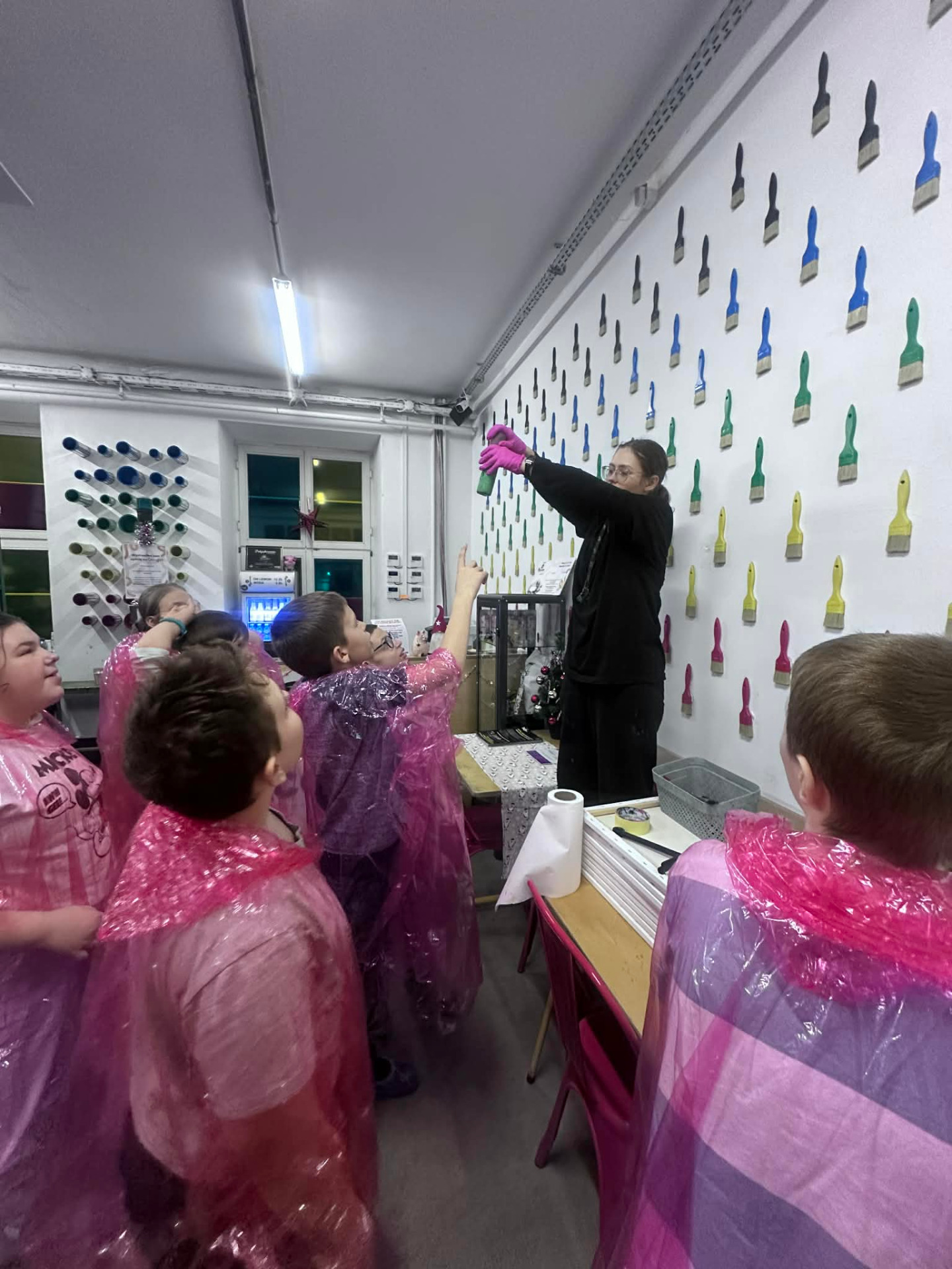 W Picasso Creative Paint House w Lublinie przeżyli niecodzienną, kolorową przygodę , pobudzającą wyobraźnię i kreatywność w trybie DIY (Do IT Yourself). Spędzili czas tworząc obrazy w technice action - painting. Była to doskonała okazja do eksperymentowania z: kolorami, kształtami, teksturami. Każdy z uczestników wycieczki zabrał swoje dzieło do domu.