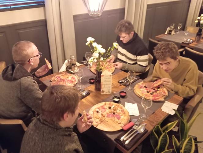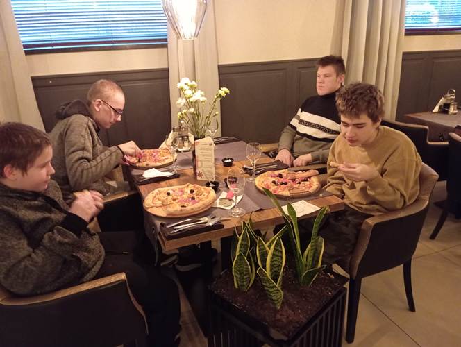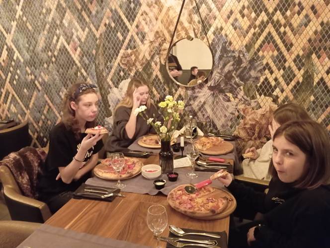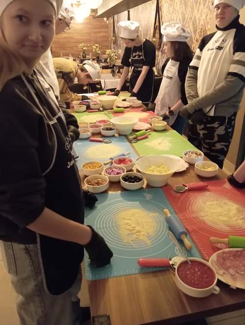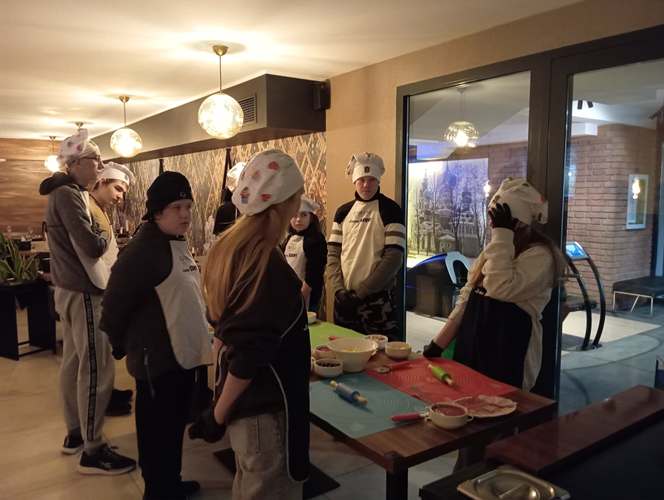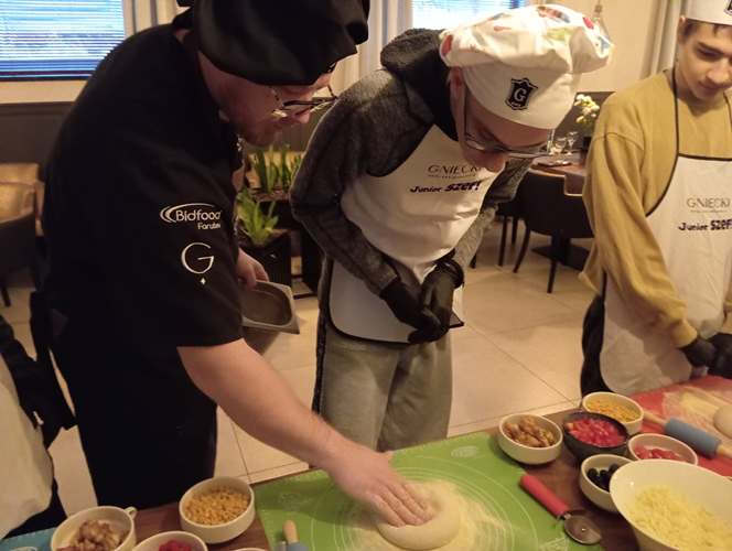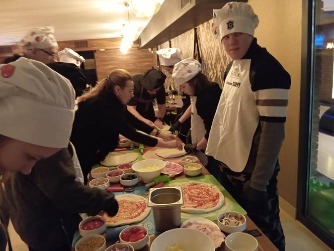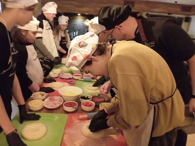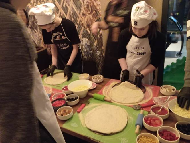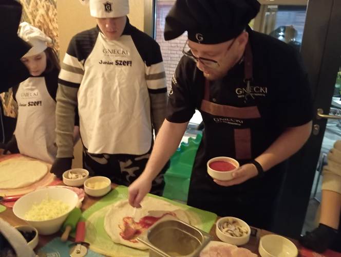 Końcowy etap to samodzielne wykonanie prawdziwej włoskiej pizzy. Wiedza dotycząca techniki wykonywania ciasta, przygotowania sosu oraz doboru najwyższej jakości produktów była dla młodzieży niezwykle cenna. Istotnym elementem była również degustacja przygotowanej samodzielnie potrawy i relaks przy aromatycznej herbacie. Wyjście z Klasą było zatem prawdziwą ucztą zarówno dla ciała jak i dla ducha.