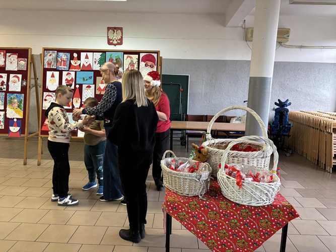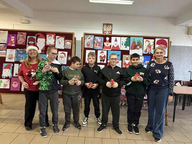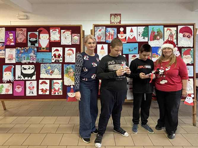 Tradycyjnie od kilku lat, tuż przed 6 grudnia uczniowie naszej szkoły przygotowują prace plastyczne uwieczniając postać Świętego Mikołaja. W tegorocznej edycji konkursu wzięło udział 57 młodych artystów! I mimo, że w pracach dominował kolor czerwony różniły się one techniką wykonania, wizją artystyczną oraz pomysłem. Komisja konkursowa spotkała się z bardzo trudnym zadaniem więc postanowiła jednogłosnie nagrodzić wykonawców wszystkich prac. Do uczniów trafiły świąteczne upominki uroczyście wręczane przez panią dyrektor Katarzynę Lachowską.