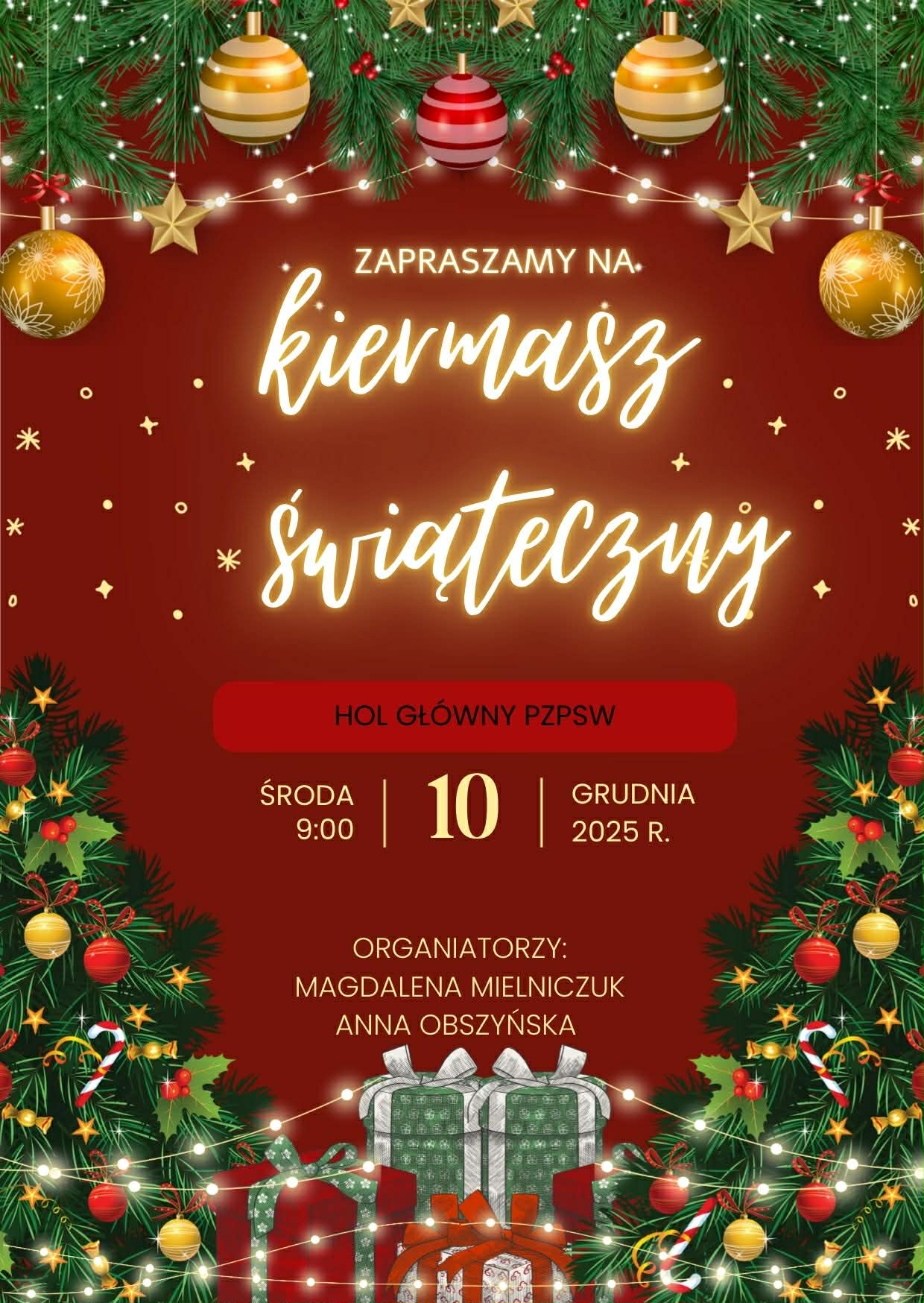Serdecznie zachęcamy całą społeczność szkolną, rodziców oraz sympatyków naszej placówki do udziału w Kiermaszu Ozdób Świątecznych, który odbędzie się 10 grudnia 2025 r. o godzinie 9:00 w holu głównym PZPSW. Podczas kiermaszu będzie można nabyć wyjątkowe, ręcznie wykonane ozdoby świąteczne To doskonała okazja, aby poczuć magię zbliżających się Świąt oraz zabrać do domu coś naprawdę pięknego i niepowtarzalnego. Serdecznie zapraszamy !