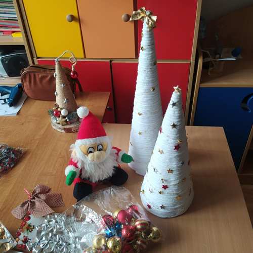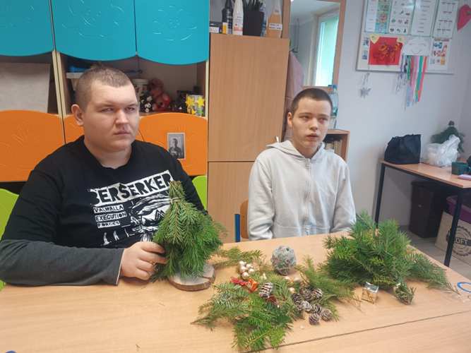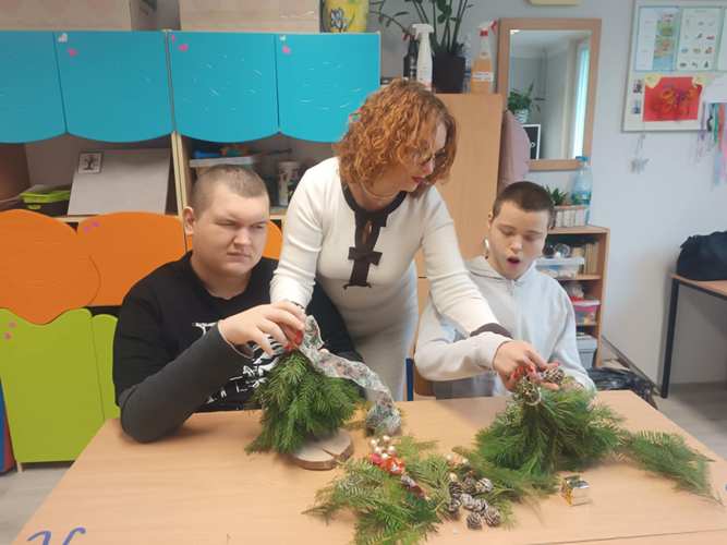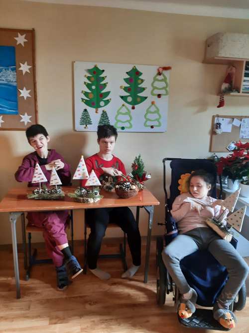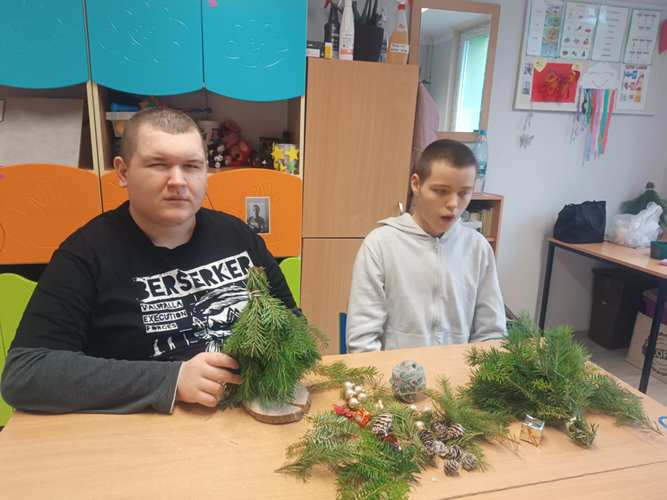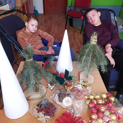 W dniu 17. 12. 2025 roku w zespołach rewalidacyjno – wychowawczych odbyły się zimowe warsztaty plastyczne o tematyce świątecznej. Zajęcia przybliżyły nas do zbliżającej się wigilii i Świąt Bożego Narodzenia, które będziemy obchodzili już za kilka dni. Warsztaty dały wydźwięk bliskości drugiego człowieka, w którym każdy powinien postrzegać braterskie dobro. Owiane tematyką choinek sprawiły wszystkim dużo radości i satysfakcji.