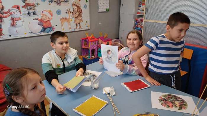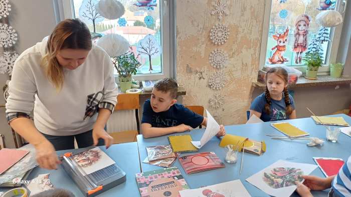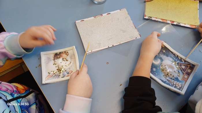 W świetlicy szkolnej odbyły się wyjątkowe warsztaty plastyczne, podczas których dzieci tworzyły magiczne kartki świąteczne. Uczniowie poznali dwie ciekawe techniki: