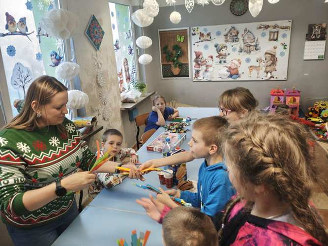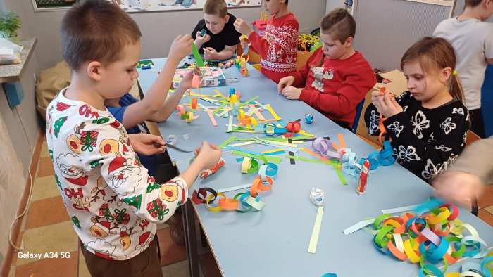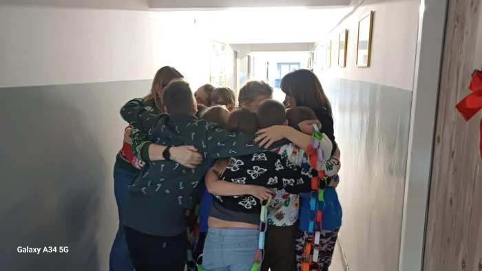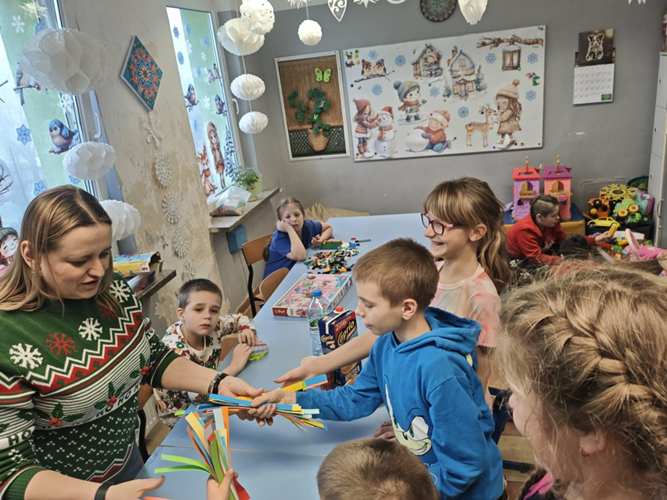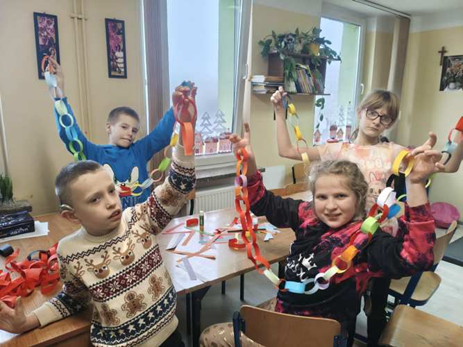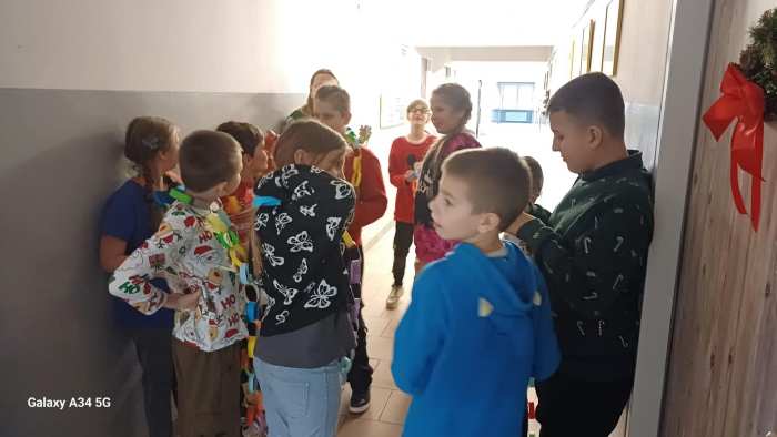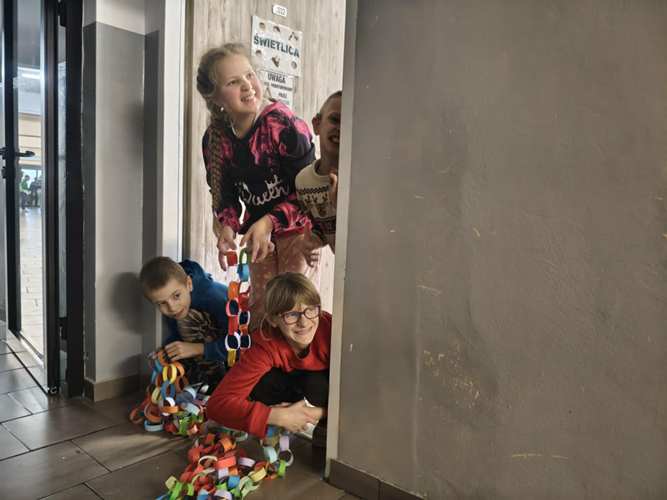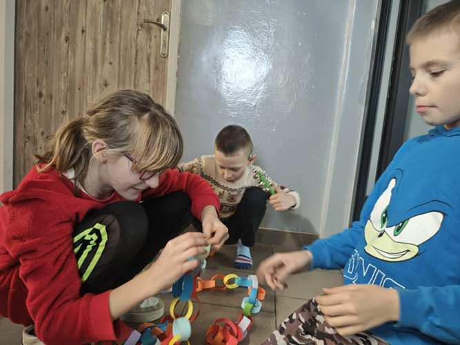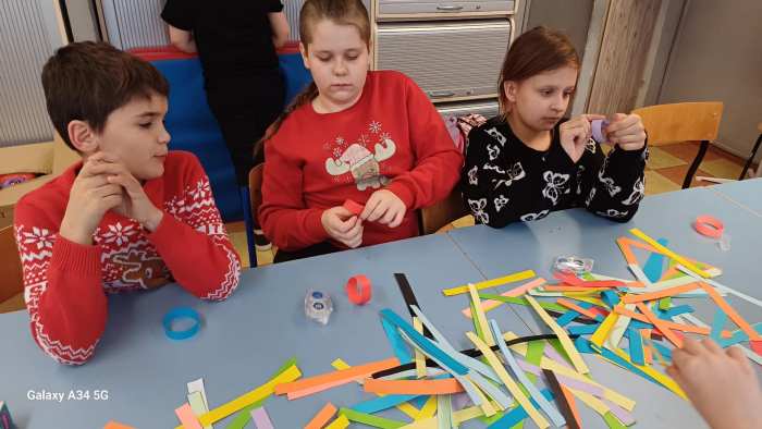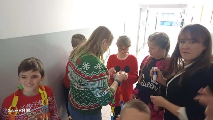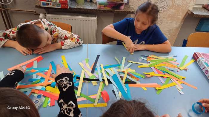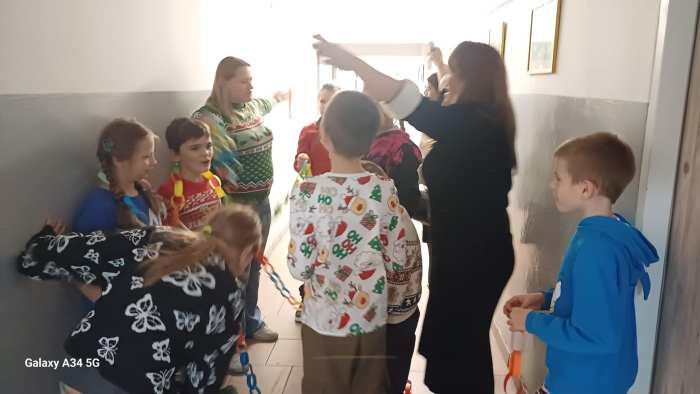 W dwóch świetlicach szkolnych 220 i 222 odbyło się wyjątkowe, międzyświetlicowe wydarzenie. W atmosferze radosnego oczekiwania na święta dzieci wspólnie tworzyły łańcuch dobrych życzeń. Każda ze świetlic przygotowała swój własny łańcuch z kolorowych, papierowych kół. Podczas pracy wspólnie zastanawiano się jakie życzenia można przekazać sobie nawzajem. Kulminacyjnym momentem było połączenie obu łańcuchów w jedną, długą i barwną całość, symbolizującą współpracę, integrację oraz wspólne świętowanie. Spotkaniu towarzyszyła radosna zabawa, wzajemne składanie życzeń oraz prawdziwie świąteczna atmosfera pełna uśmiechu i życzliwości. Wydarzenie było doskonałą okazją do integracji dzieci oraz budowania pozytywnych relacji w szkolnej społeczności.